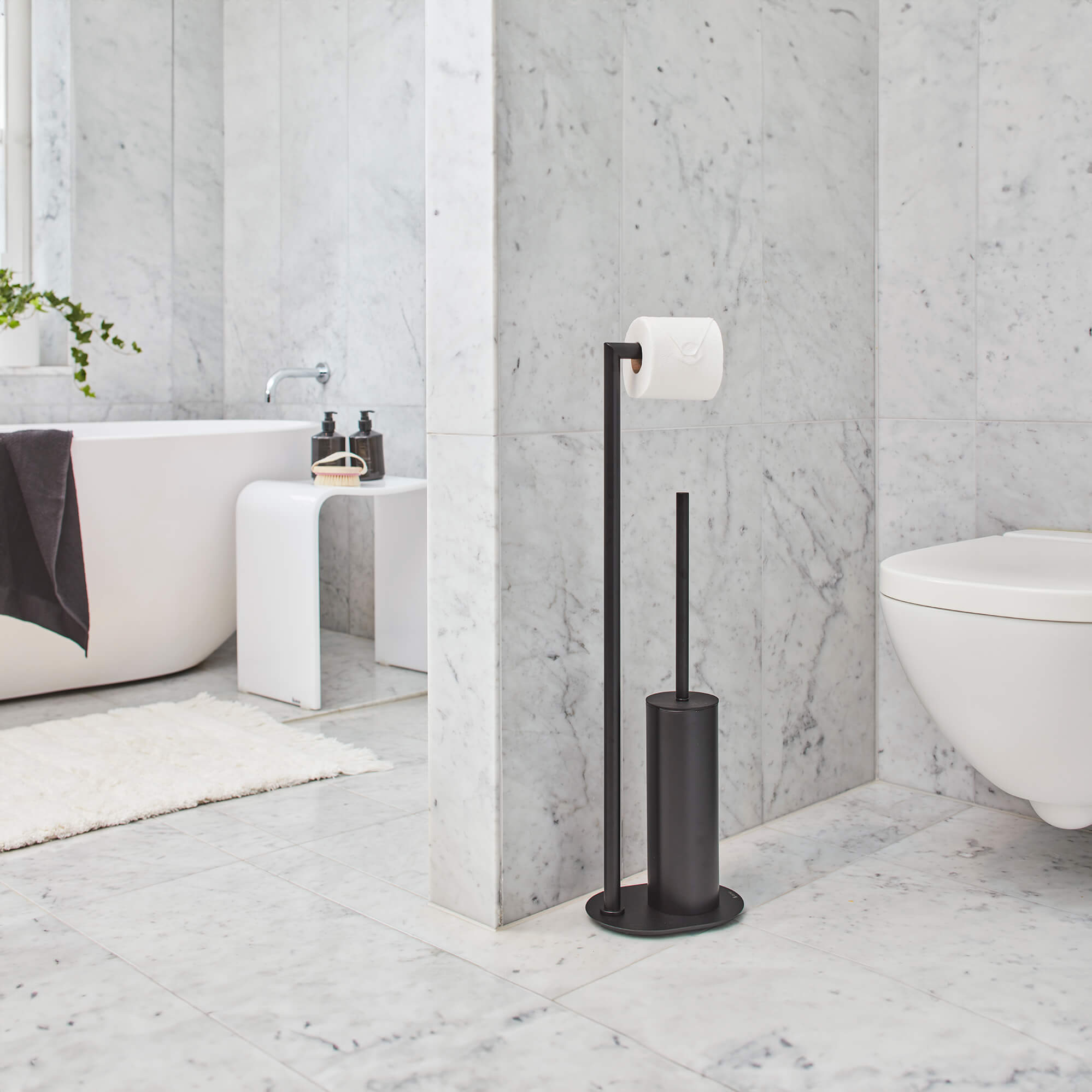 • Freestanding Toilet Roll Holder and Toilet Brush Set