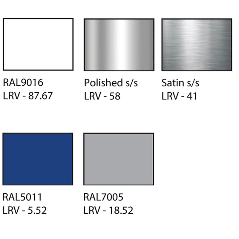 • Finishes Available: White, Blue, Grey, Satin Stainless Steel and Polished Stainless Steel [Optional]