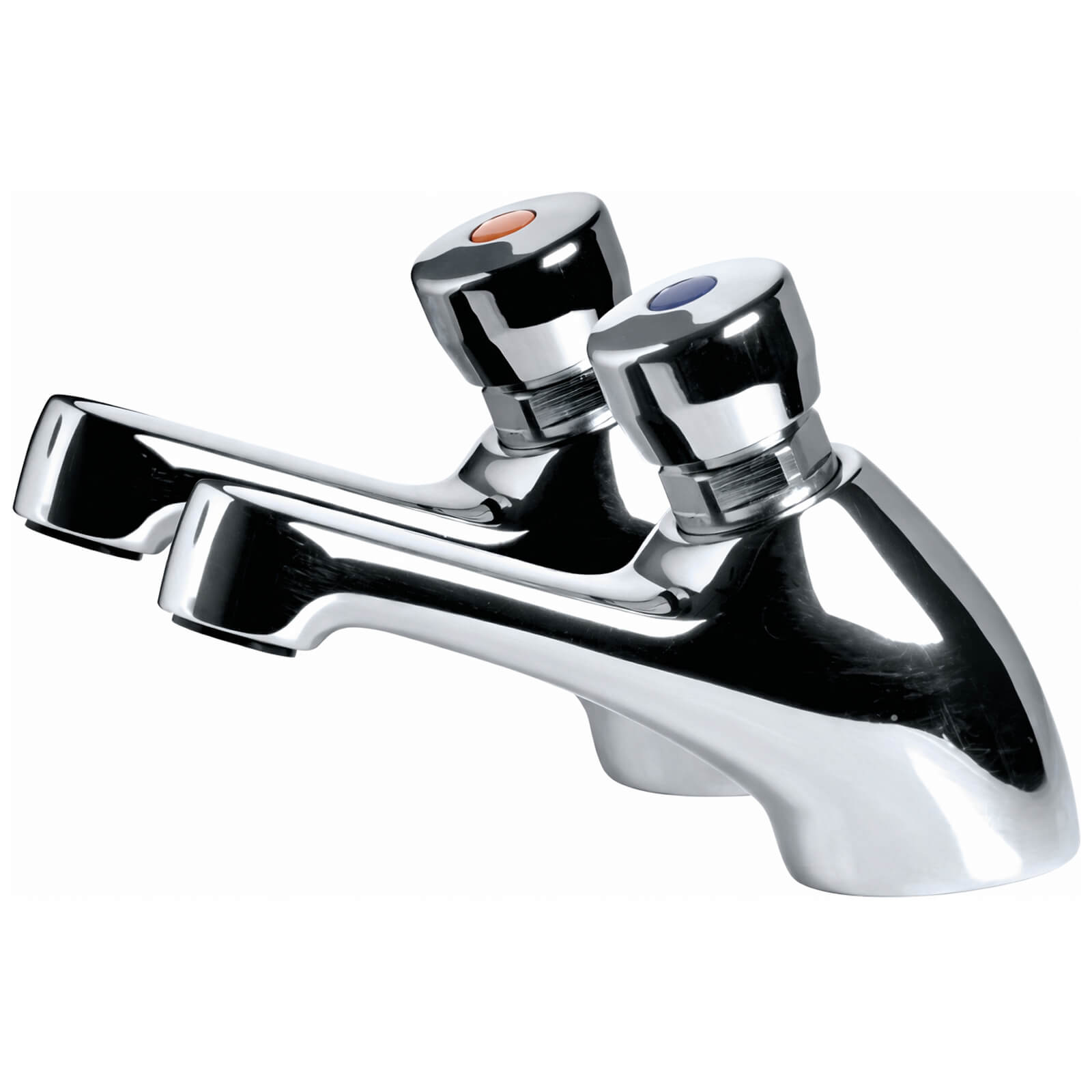 Lecico Atlas Kirkby Non-Concussive Commercial Pair Of Chrome Basin Taps - Push Handle - Deck Mounted