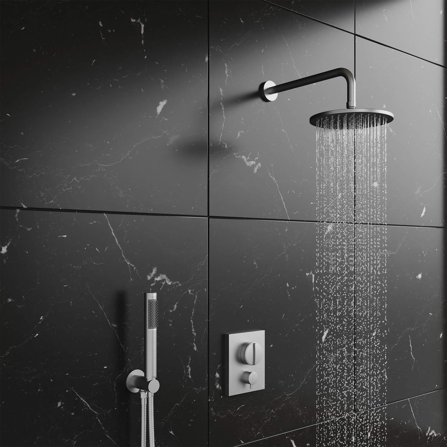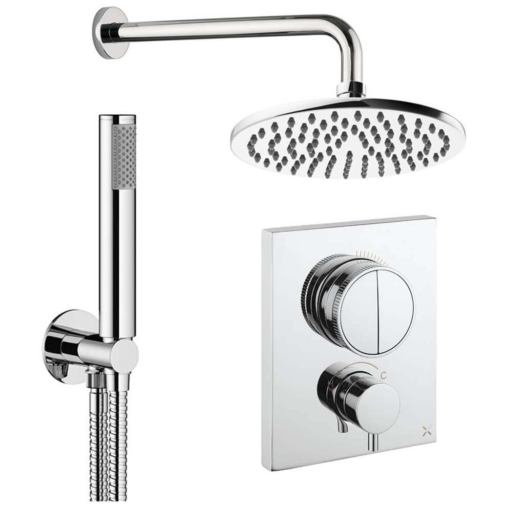 • Product Includes: Shower Valve, Thermostatic CrossBox (Concealed Part), Shower Kit: Handset and Hose, Fixed Shower Head and Shower Arm