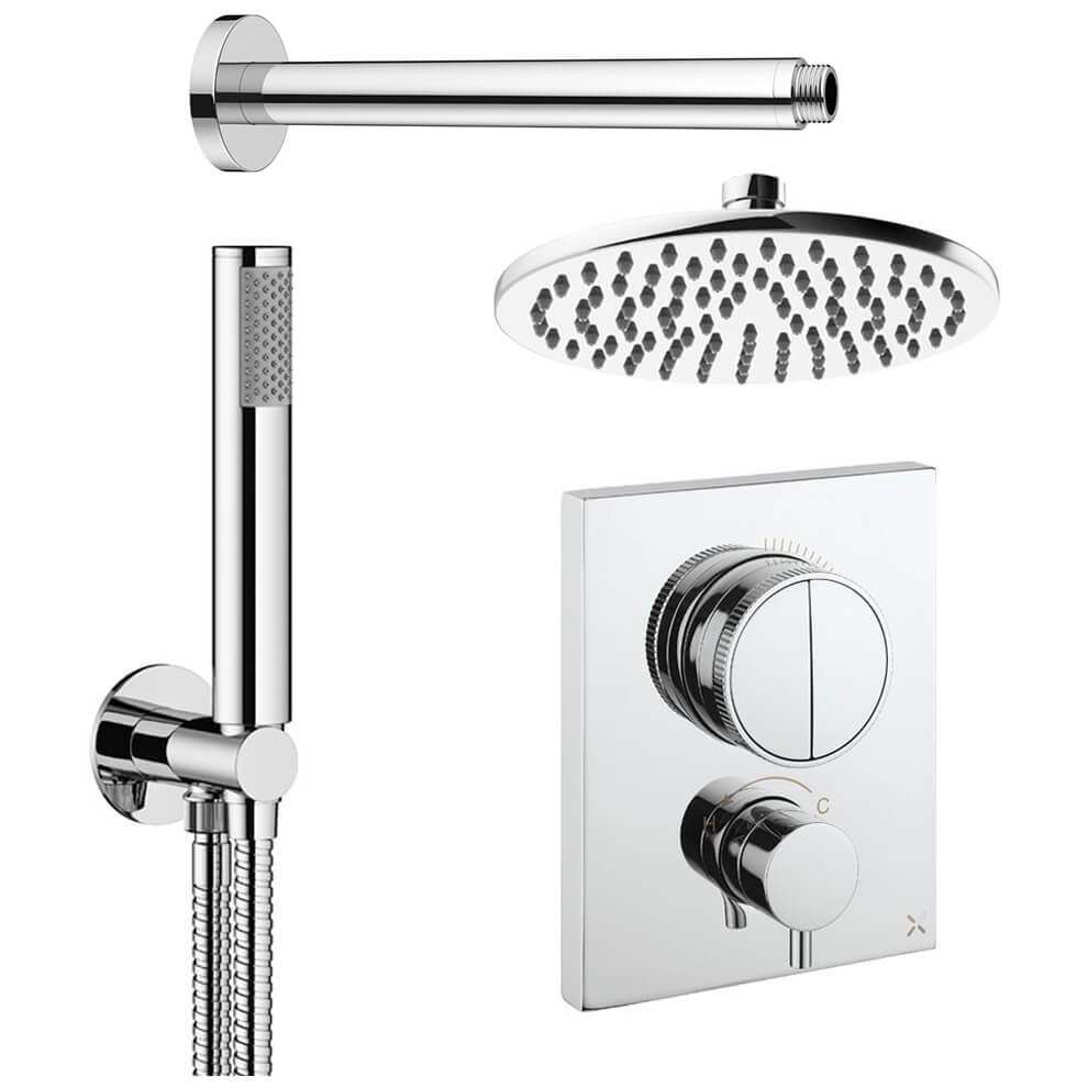 • Product Includes: Shower Valve, Thermostatic CrossBox (Concealed Part), Shower Kit: Handset and Hose, Fixed Shower Head and Shower Arm