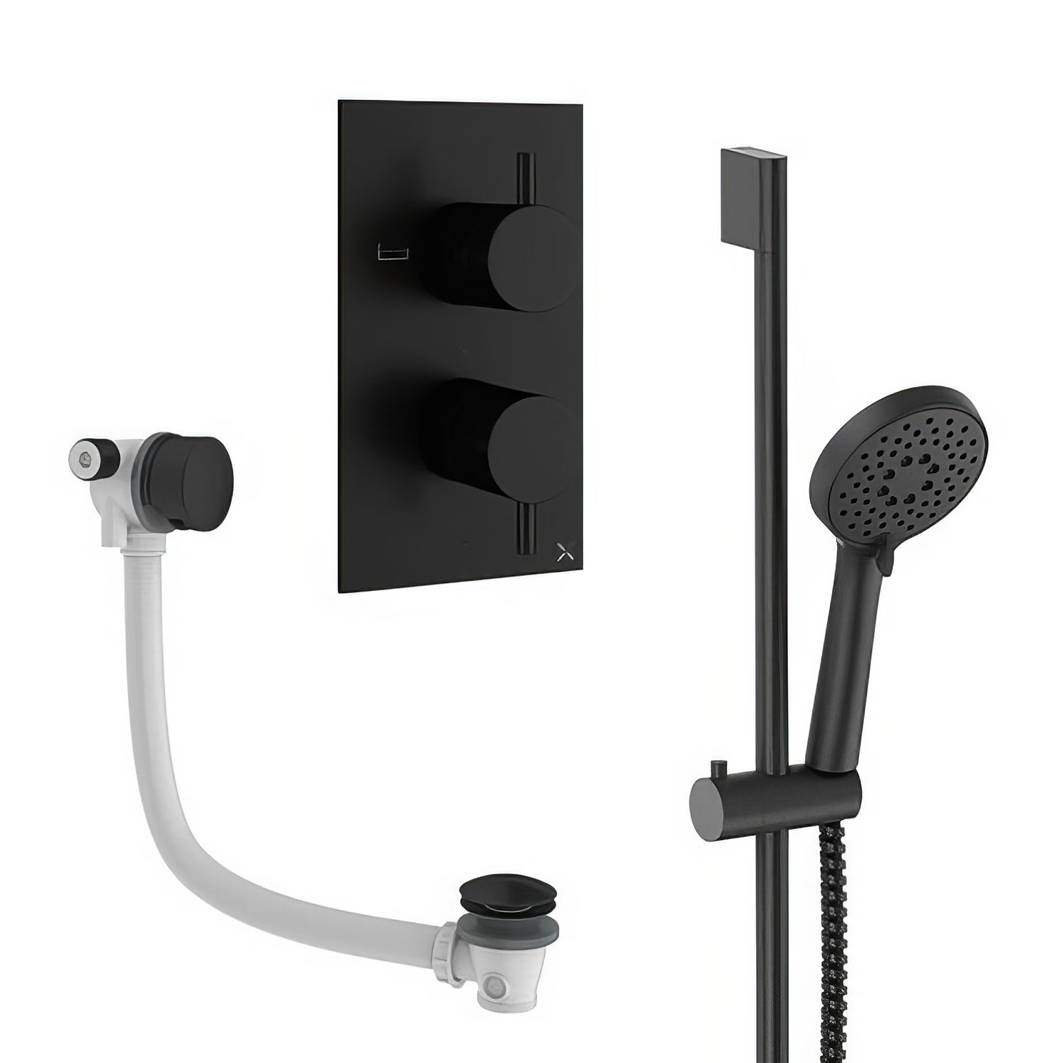 Crosswater MPRO Concealed Thermostatic Valve and Slide Rail Kit and Bath Filler - 1 Outlet.