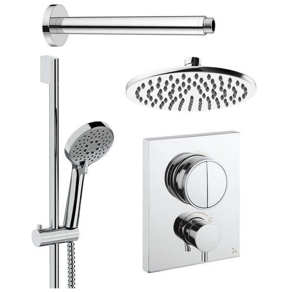 • Product Includes: Shower Valve, Thermostatic CrossBox (Concealed Part), Shower Kit: Handset and Hose, Fixed Shower Head and Shower Arm