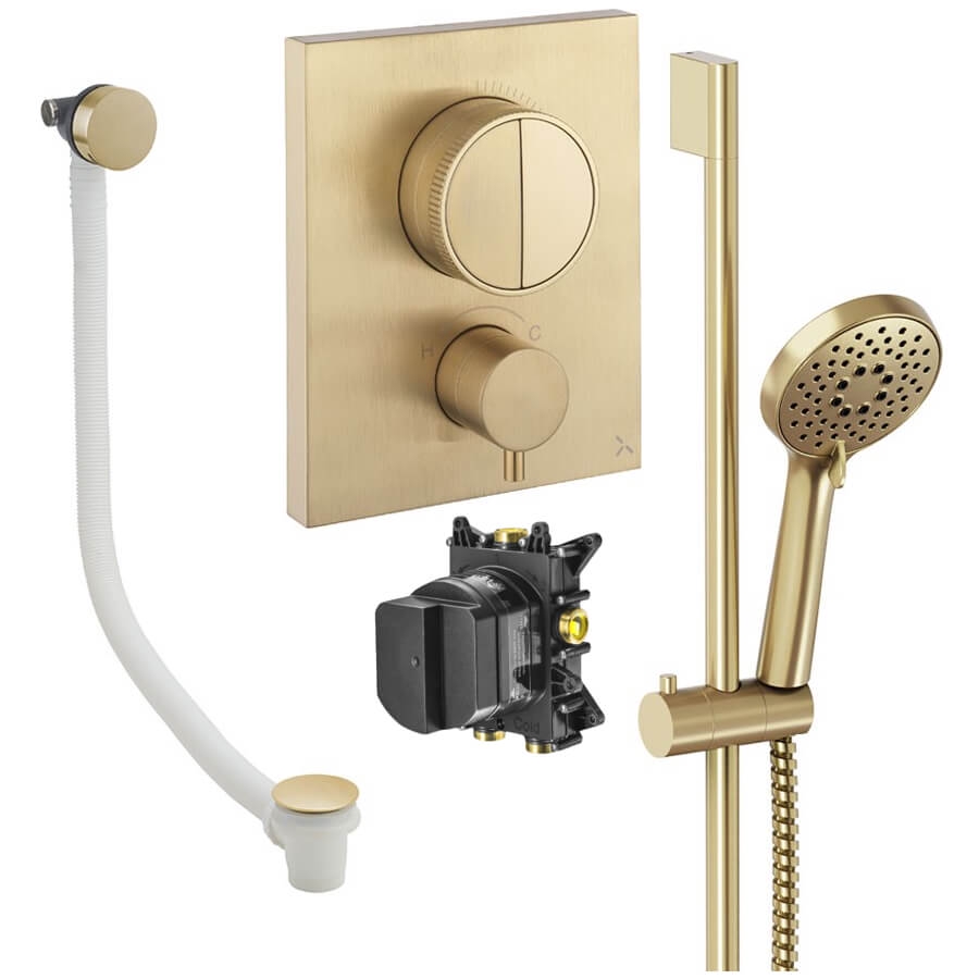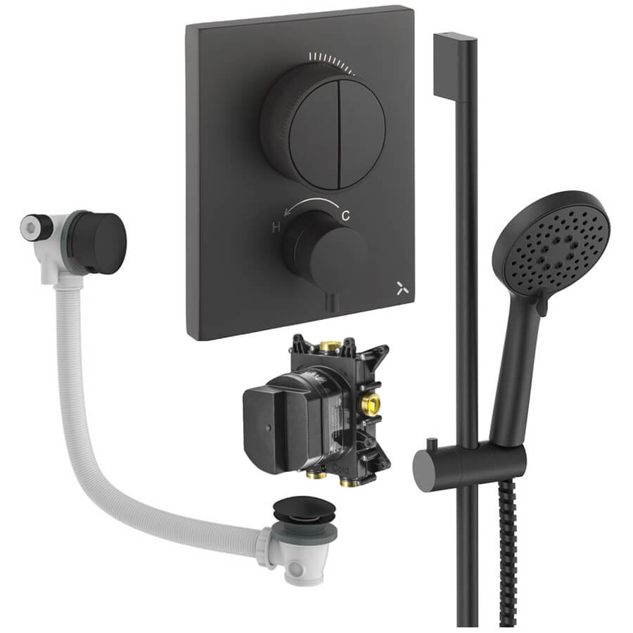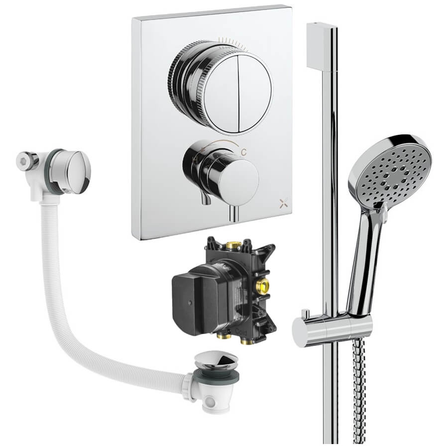 • Product Includes: Shower Valve, Thermostatic CrossBox (Concealed Part), Shower Kit: Handset and Hose, Bath Filler with Waste