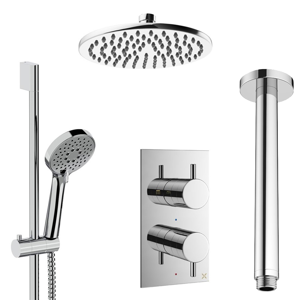 Crosswater MPRO Concealed Thermostatic Valve with Wall Mounted Shower Head and Slide Rail Kit - 2 Outlet