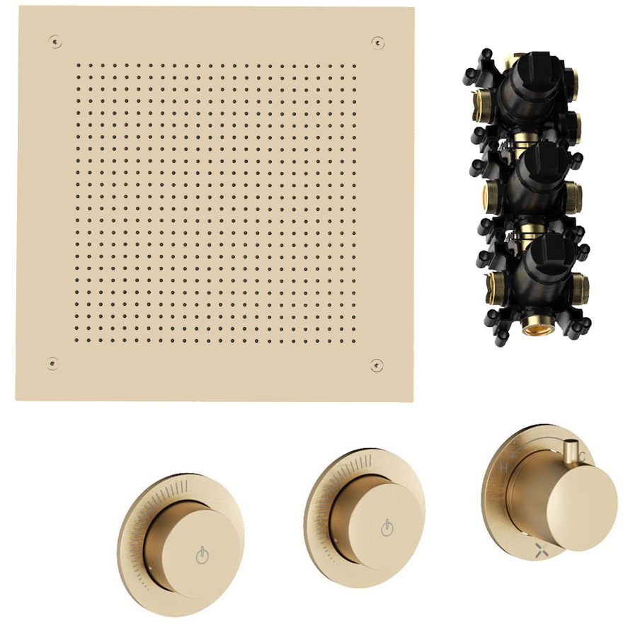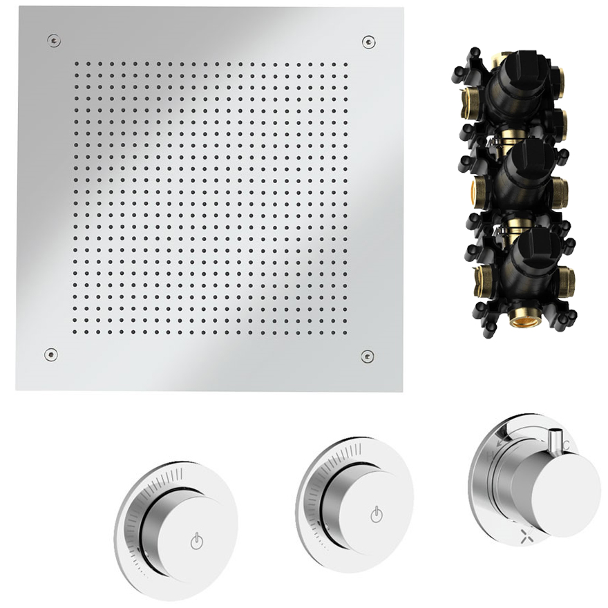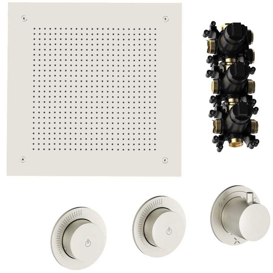 • Includes: Push Button On/Off, Flow Control, Thermostat, Minimalist Backplate and Handles
