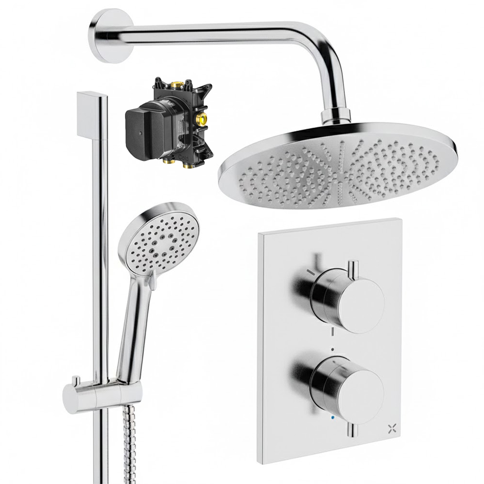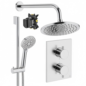 • Pack Includes: Shower Valve, Trimset, Slide Rail Kit with Handset and Hose, Fixed Head and Arm