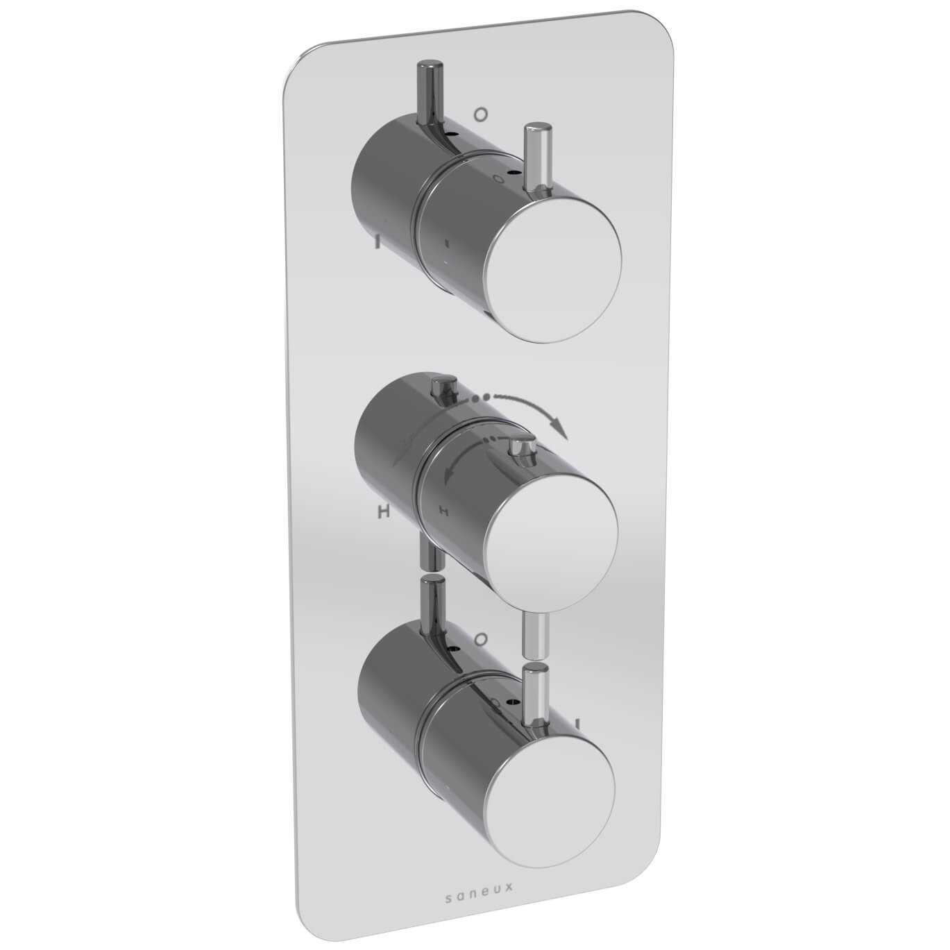 Saneux Cos 2-Way 3 Handles Concealed Thermostatic Shower Valve Kit - Portrait - 120 x 275mm