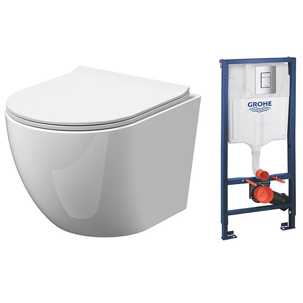 Grohe Wall Hung Rimless Toilet Pack with Rapid SL Concealed Frame Set - 500 x 1130mm
