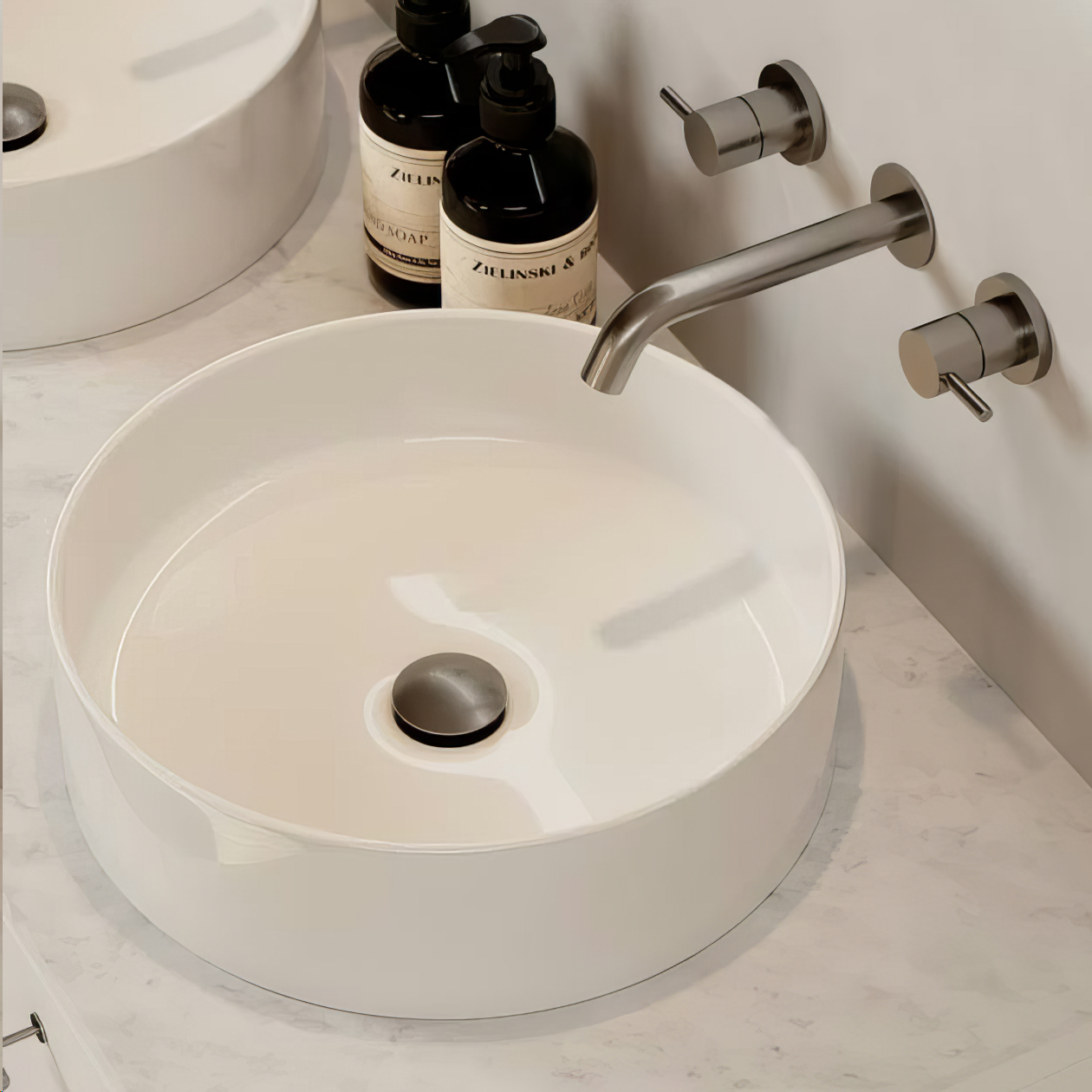 Saneux Sienna Round Gloss White Countertop Washbasin.