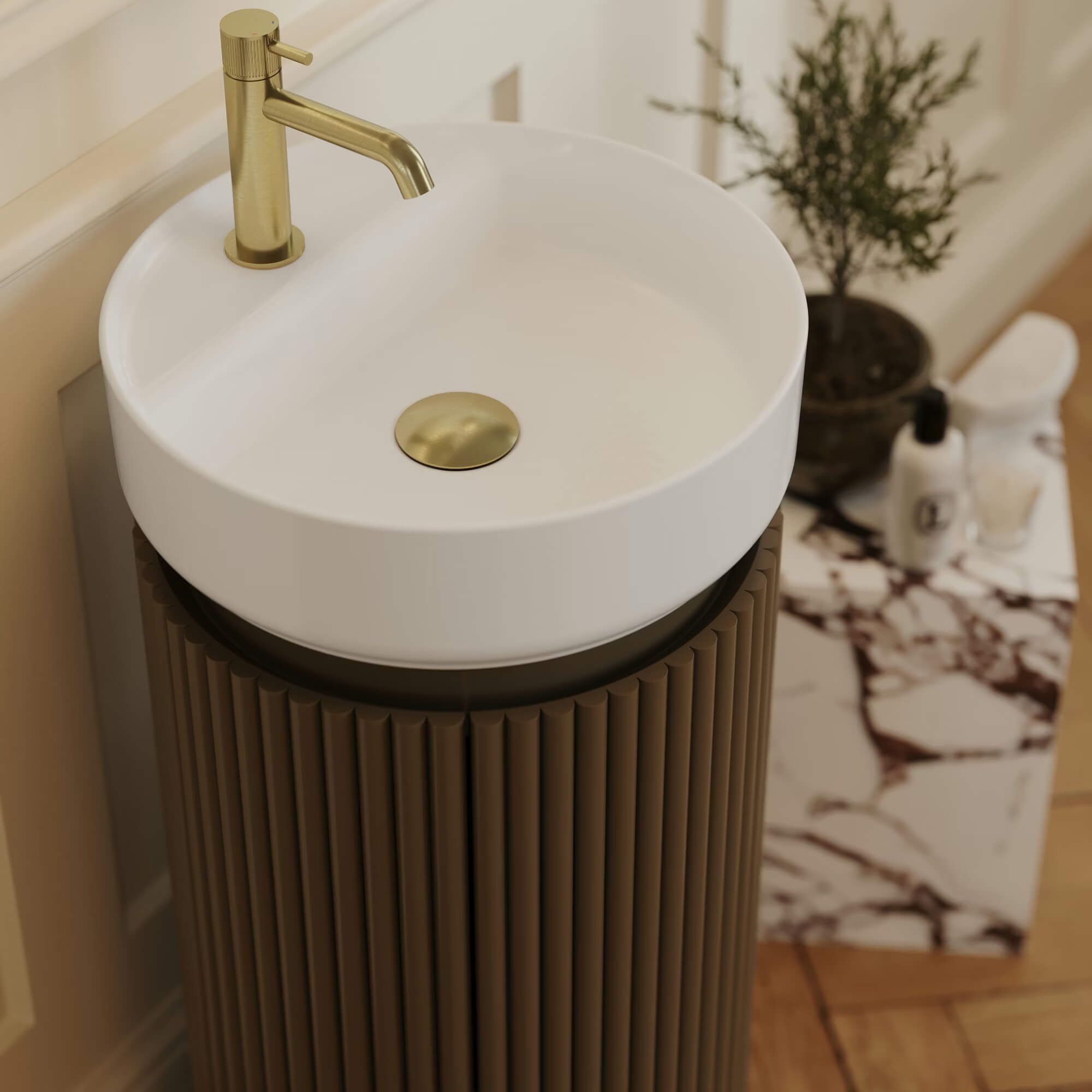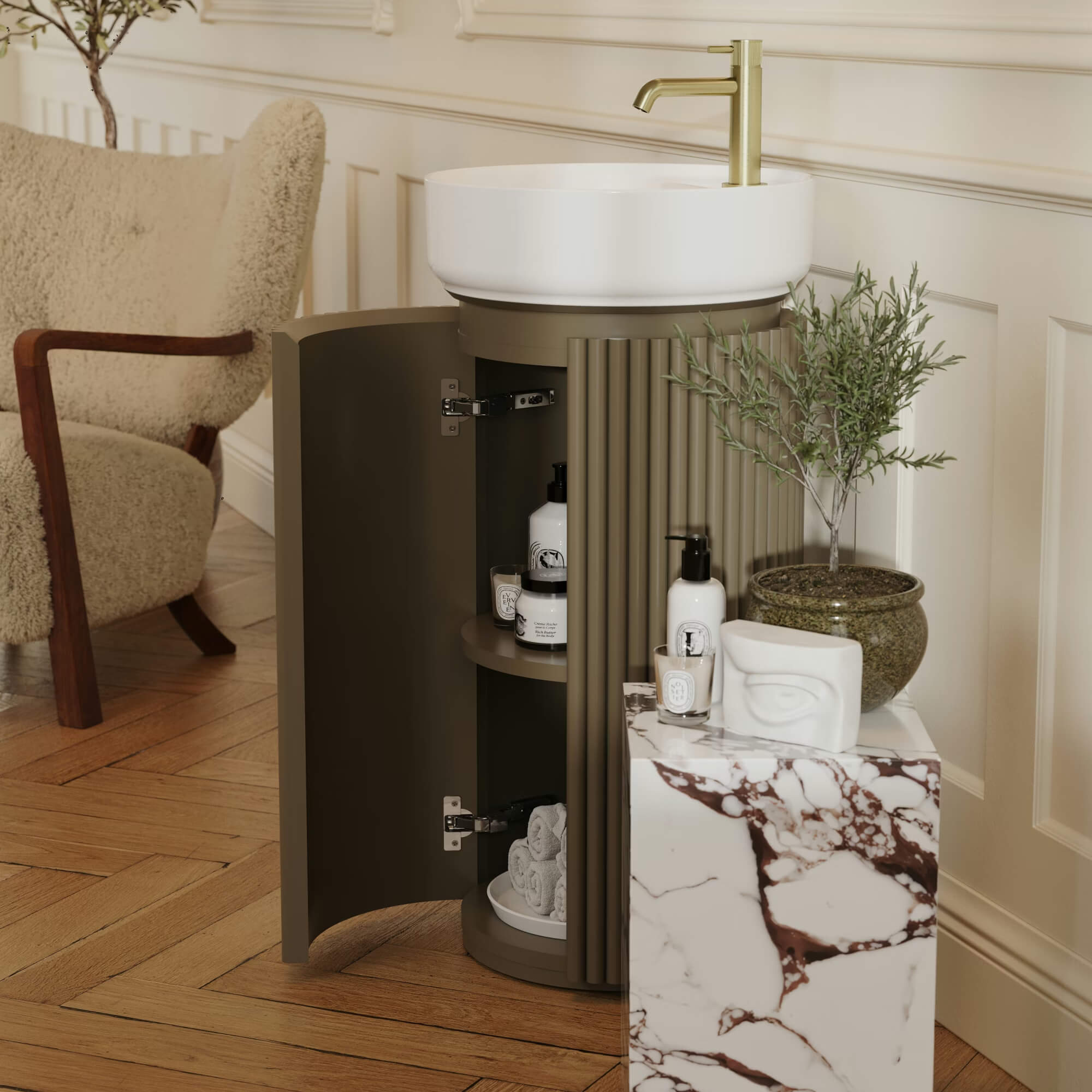 Saneux Oxford Round Fluted Floorstanding Vanity Unit - 1 Door - 410 x 730mm.