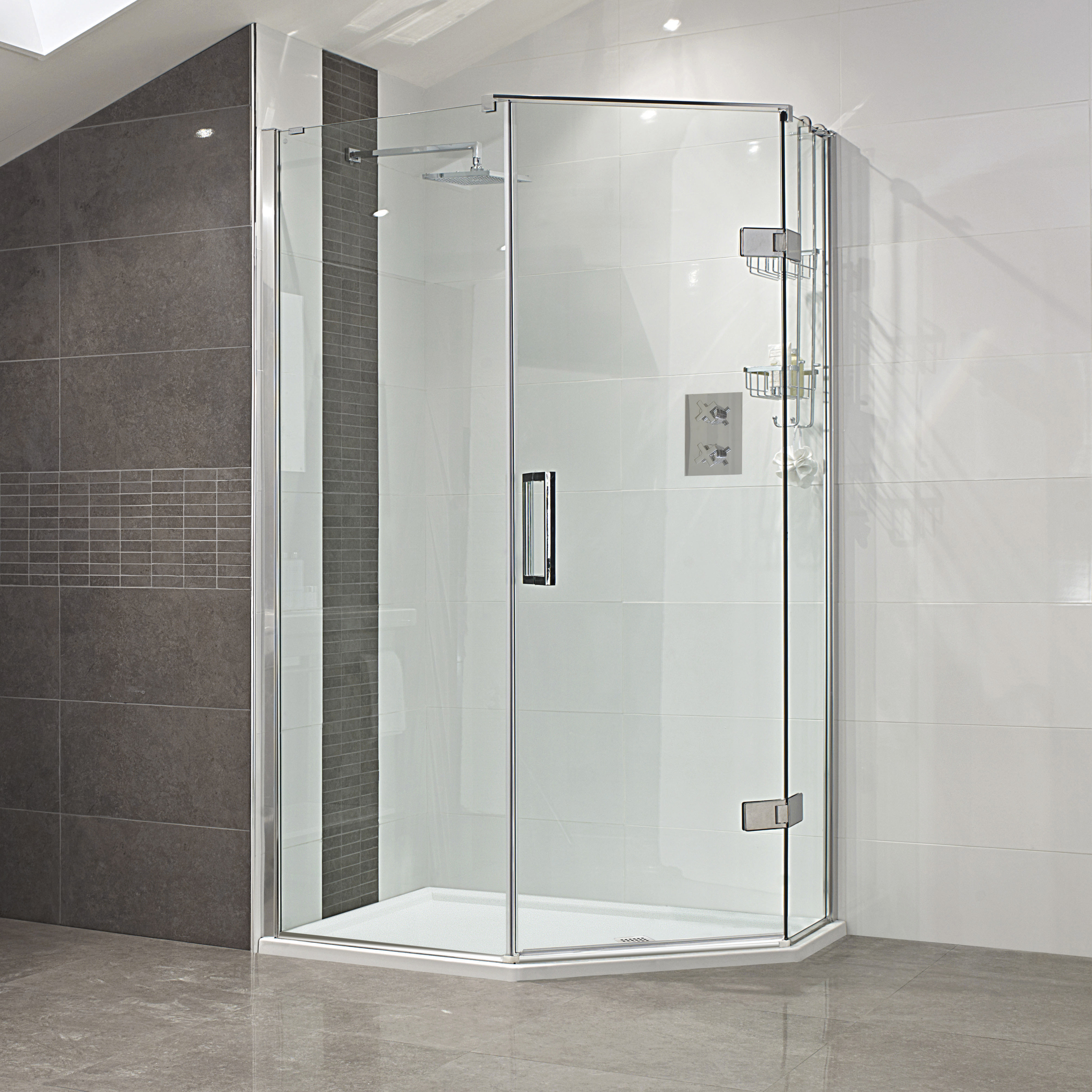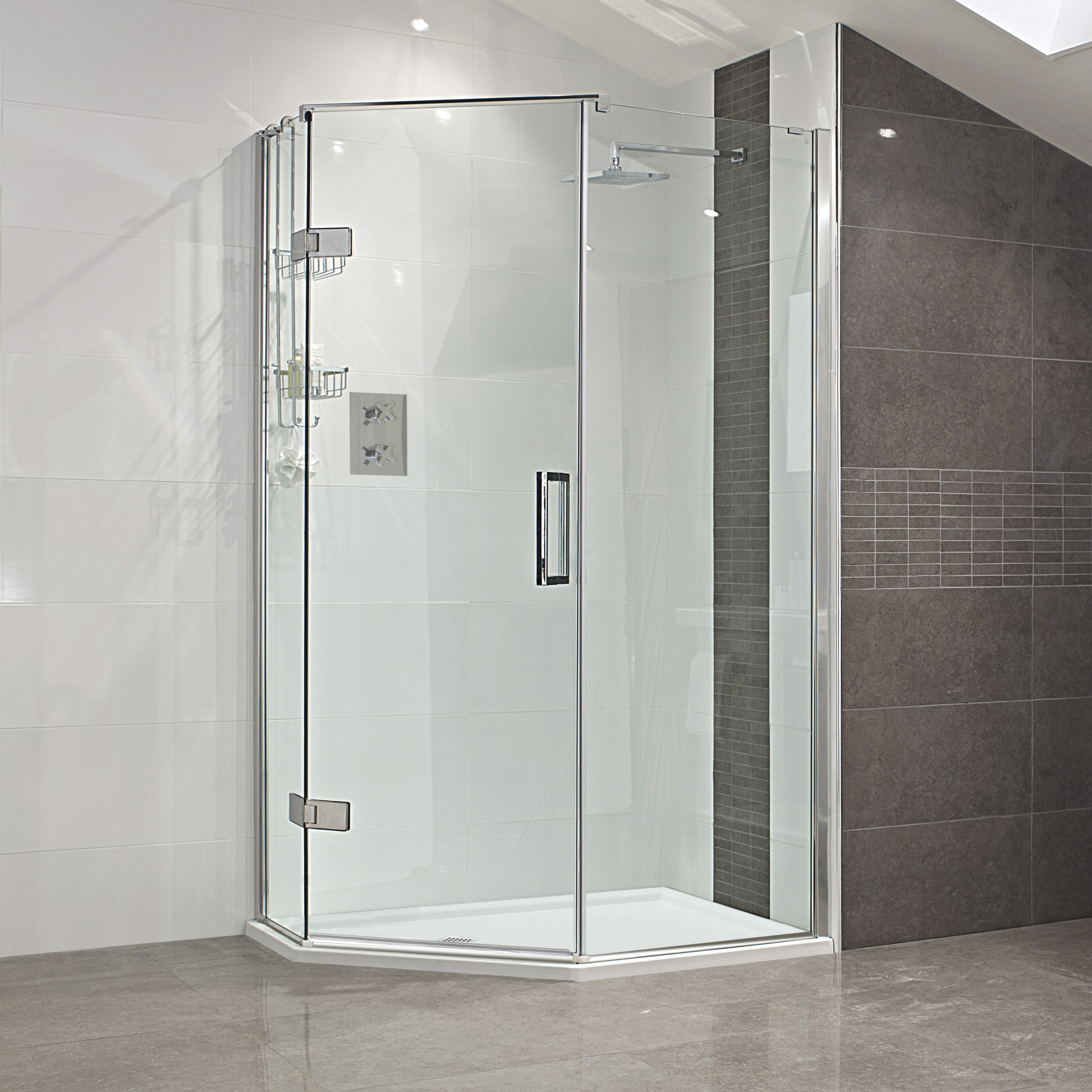 Roman Liberty Neo Reversible Pentagon Shower Enclosure with Handle - Hinged Door