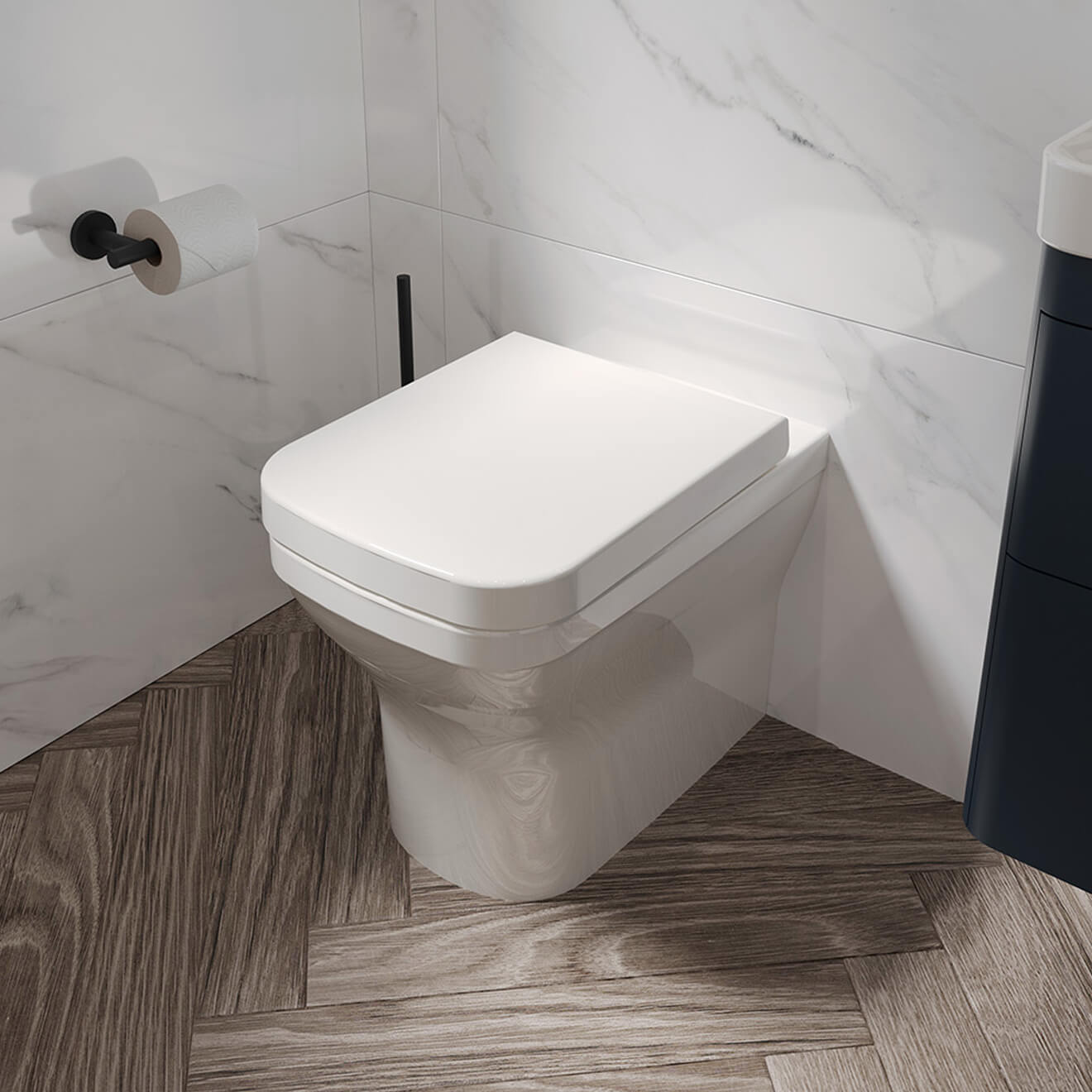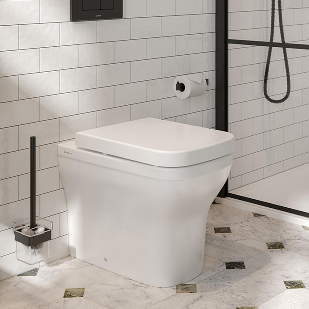 Saneux Indigo Gloss White Floorstanding Back To Wall Rimless WC Pan - 358 x 526mm