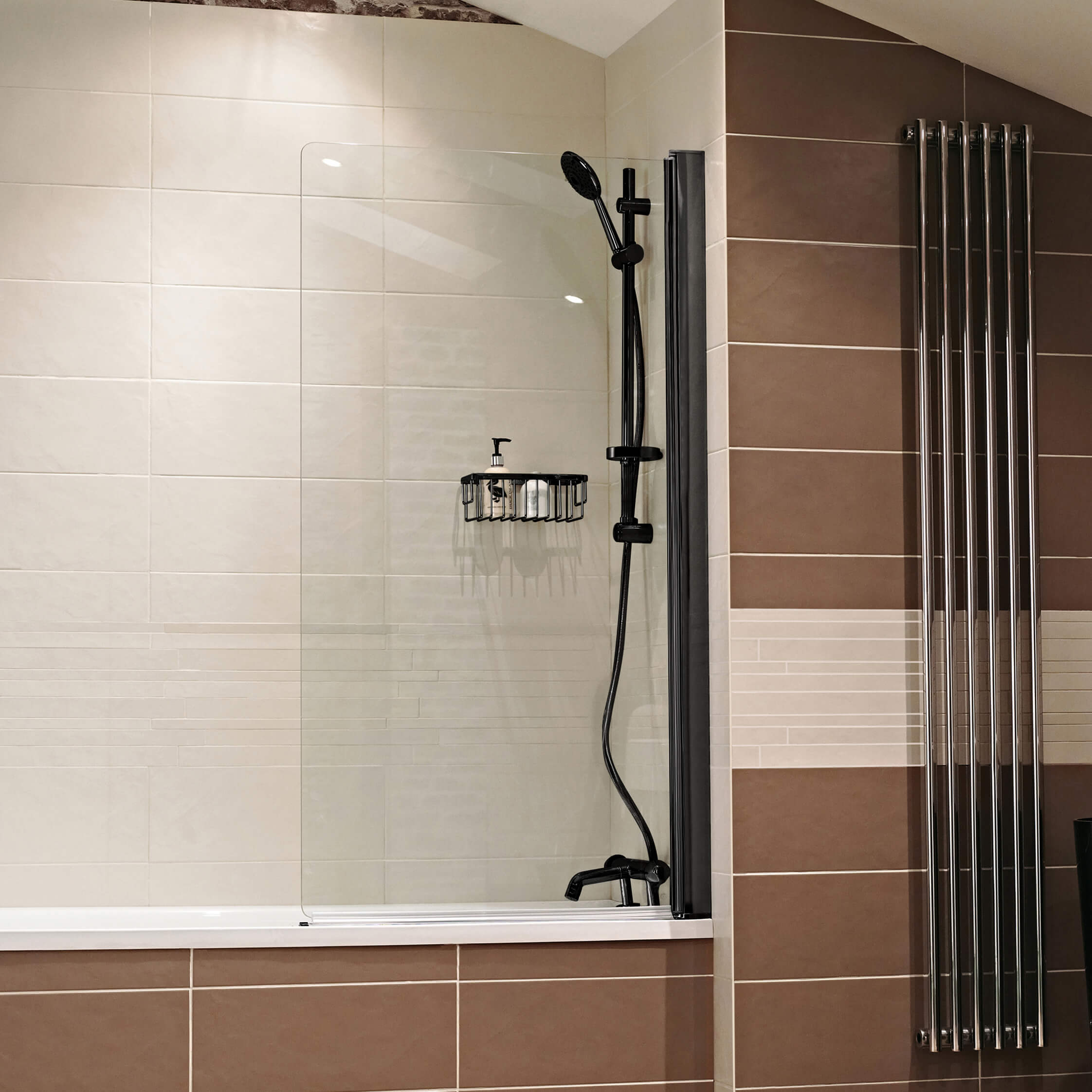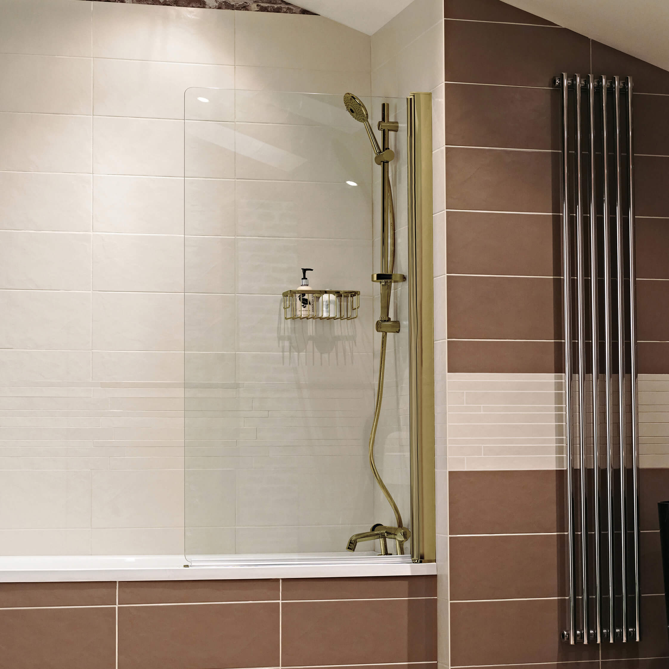 Roman Haven8 Frameless Straight Glass Pivoting Bath Screen - 835 x 1500mm.