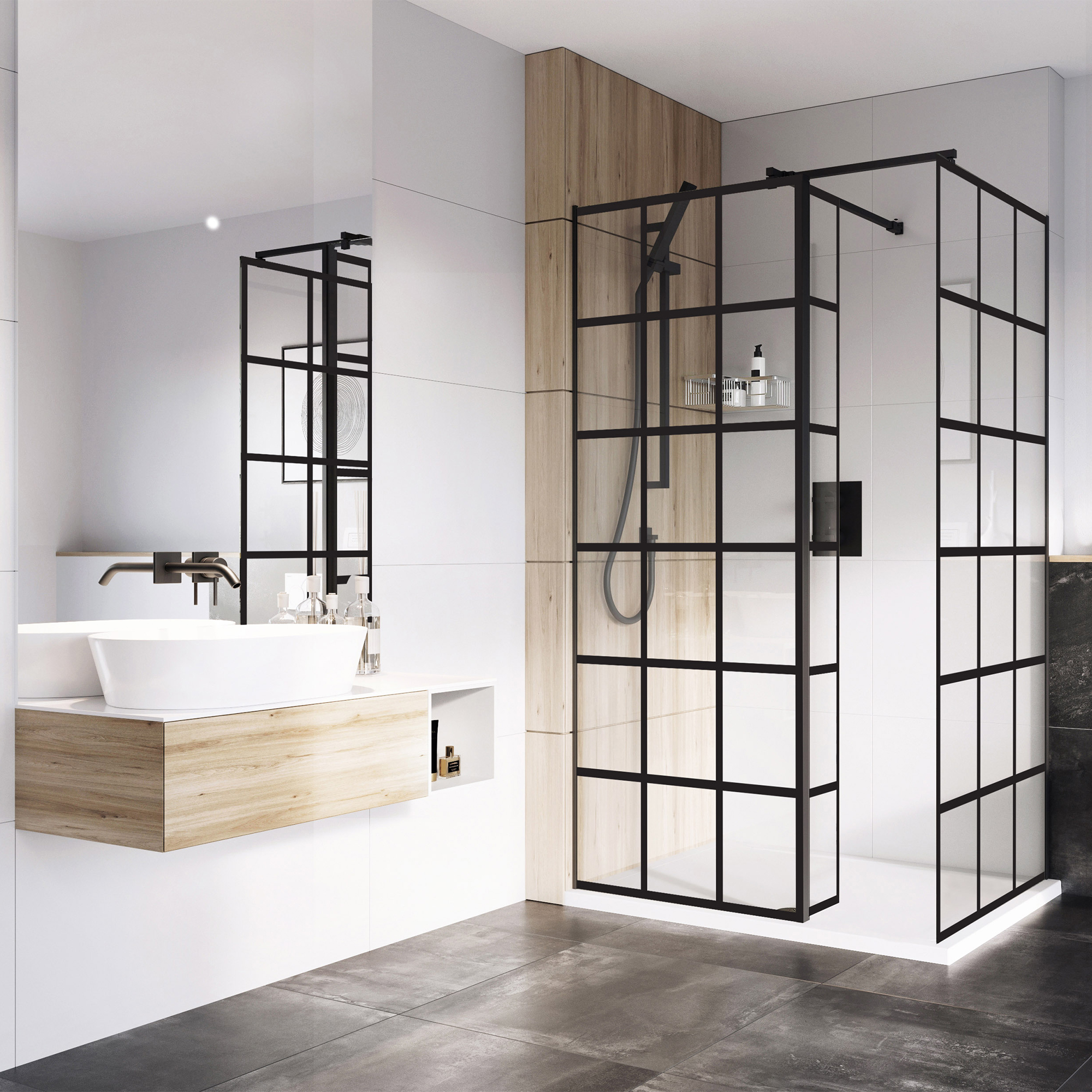 • Additional Deflector Panel Moves the Wet Area into the Shower Tray
