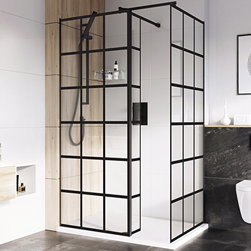 Roman Haven Select Black Grid Wetroom Shower Screen - Reversible.