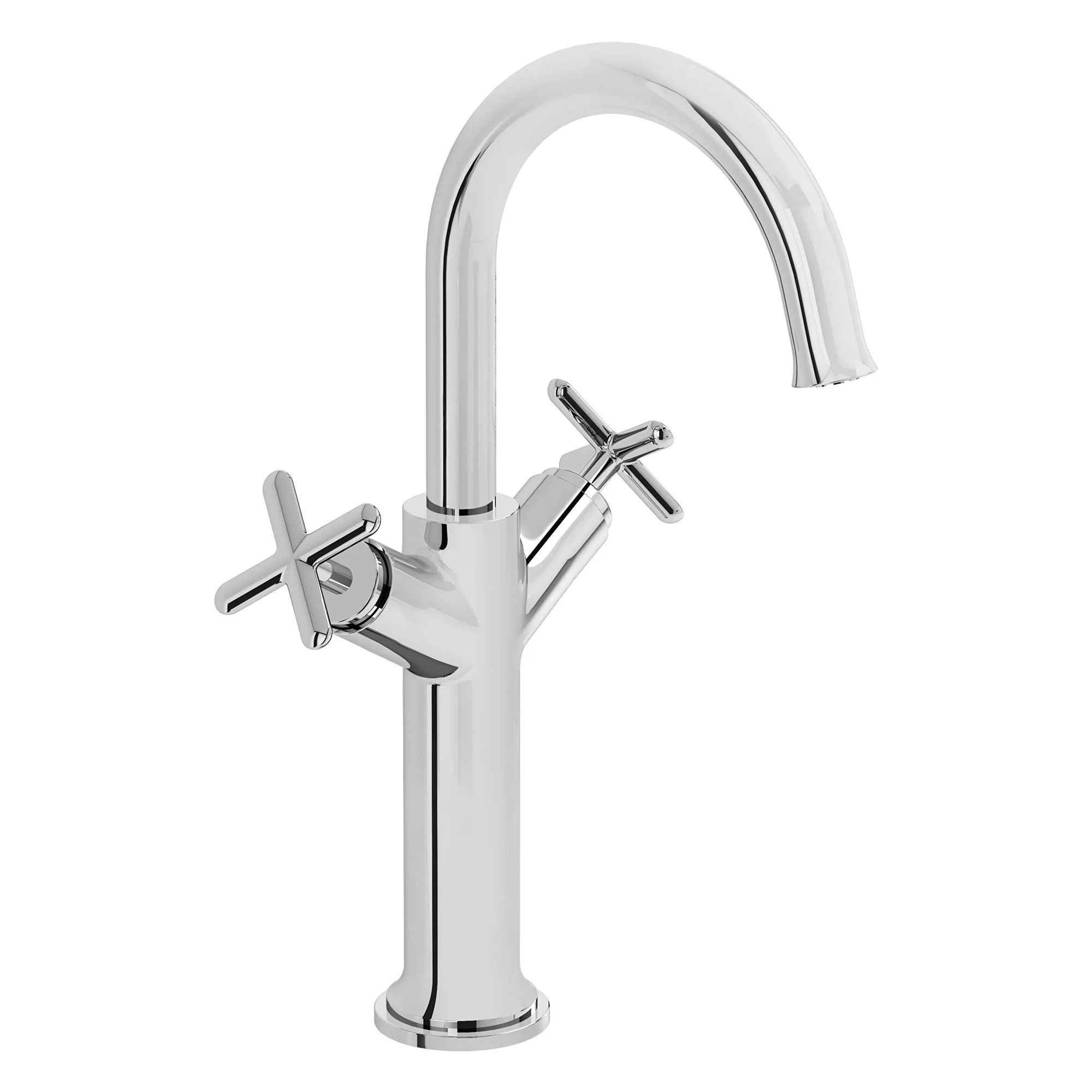 VitrA Origin Classic Tall Basin Mixer Tap with Curved Spout - Crosshead Handles
