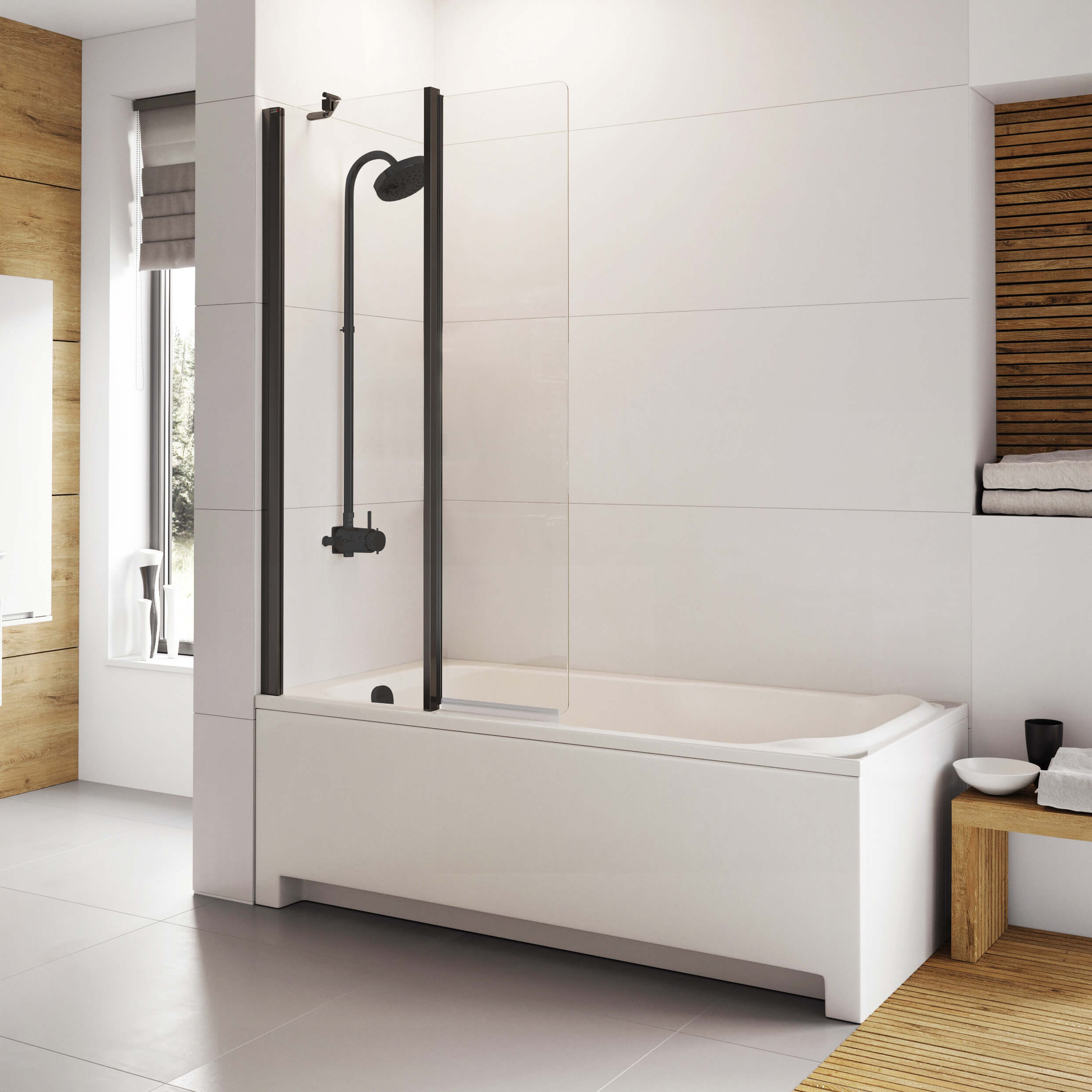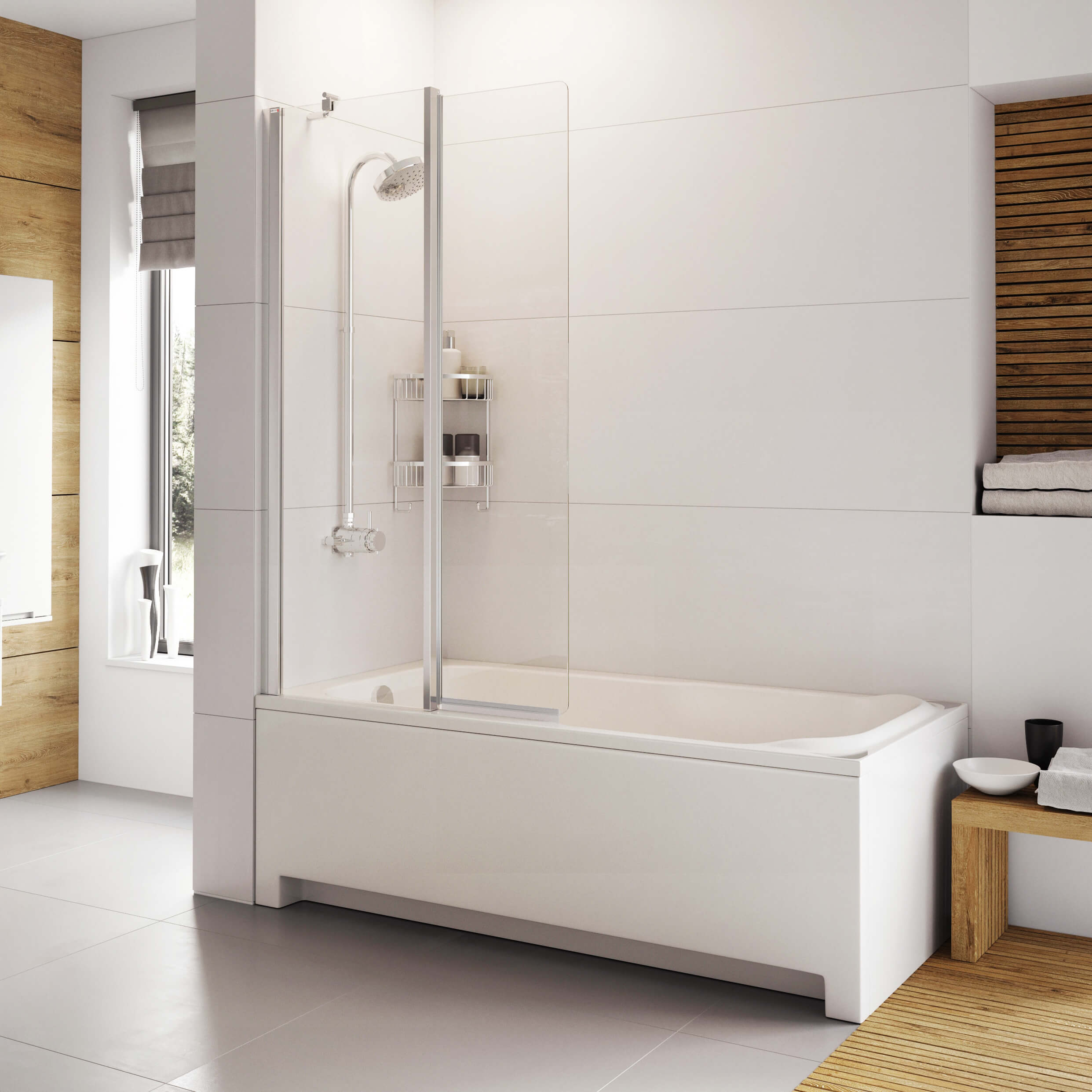 Roman Haven6 2 Panel Folding Semi-Frameless Bath Screen - 910 x 1500mm