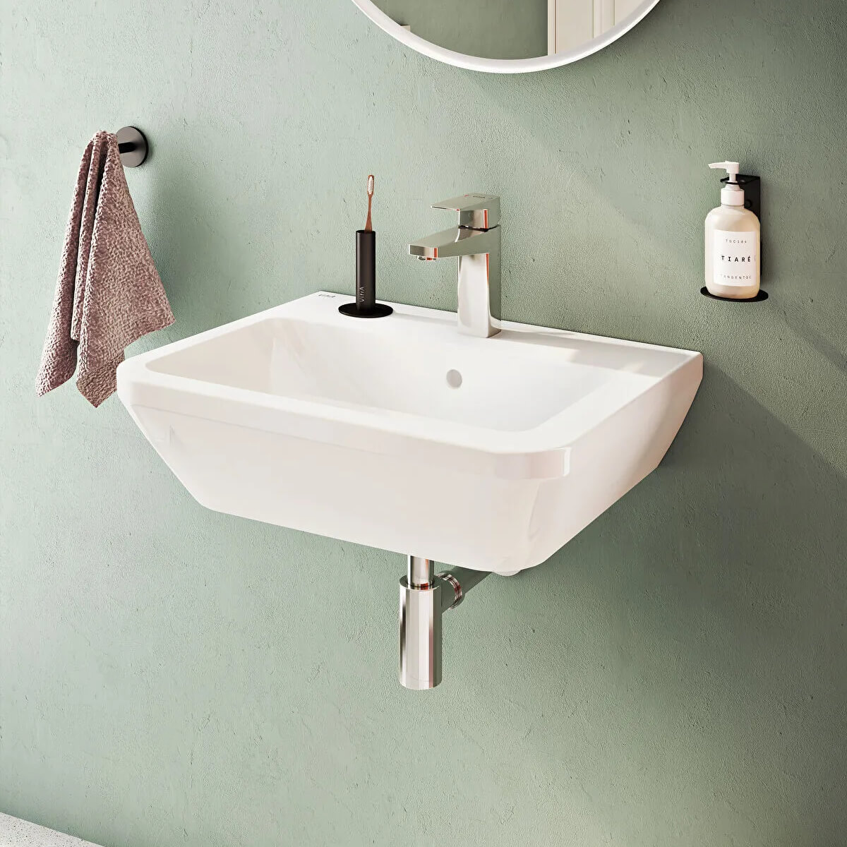 VitrA Integra 1 Taphole Contemporary Wall Hung Washbasin.