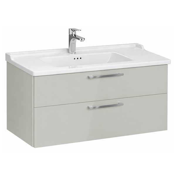 VitrA Root Flat Wall Mounted Vanity Unit with Handle - Double Drawer - 1000 x 650mm