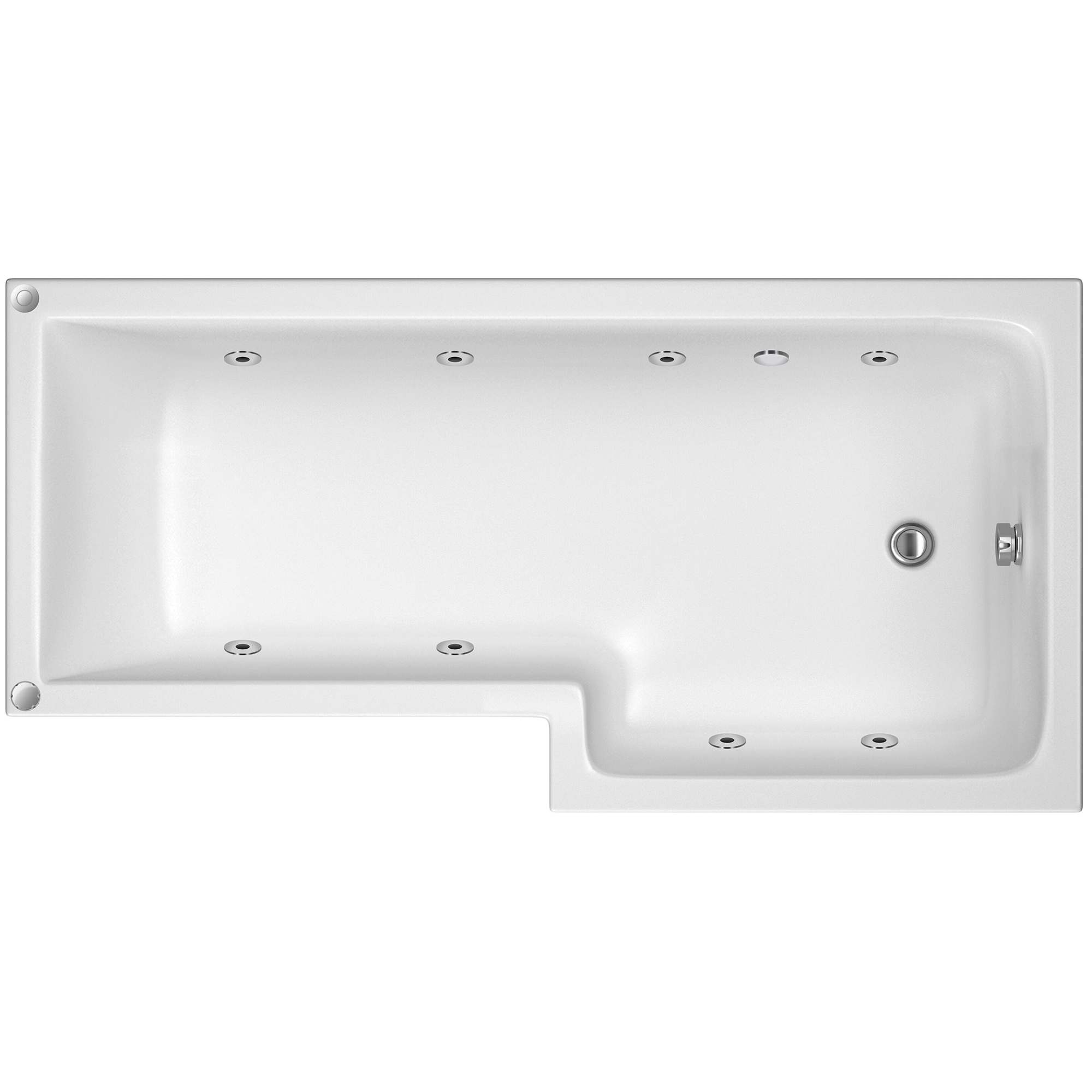 Joseph Miles L-Shaped Whirlpool Bath with Leg Sets - 8 Jet - 1800 x 850mm.