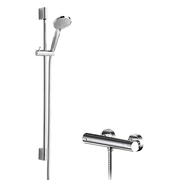 Nuie Round Thermostatic Exposed Bar Shower Valve with Slimline Slider Rail Kit - Chrome