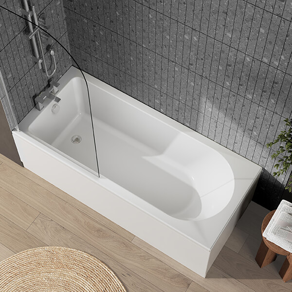 Nuie Eternalite Single Ended Straight Bath with Curved Swing Screen and Panel - 1700mm Length