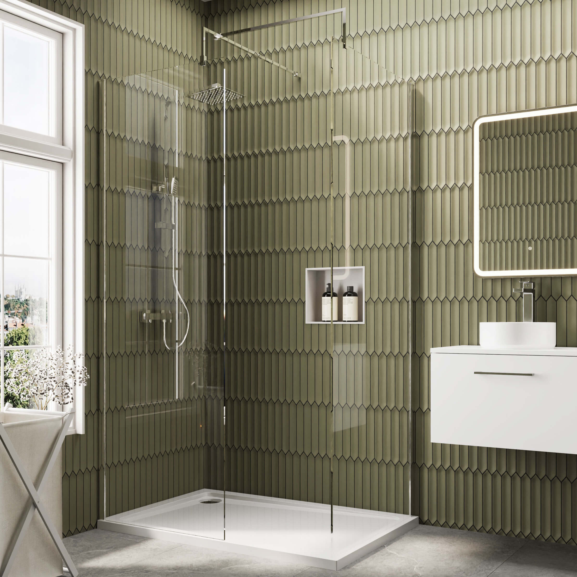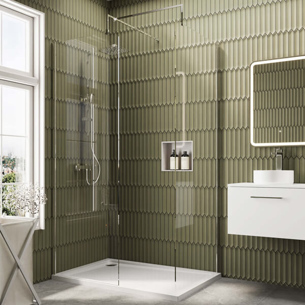 • Includes Wetroom Screens with Support Bar and Rectangular Shower Tray