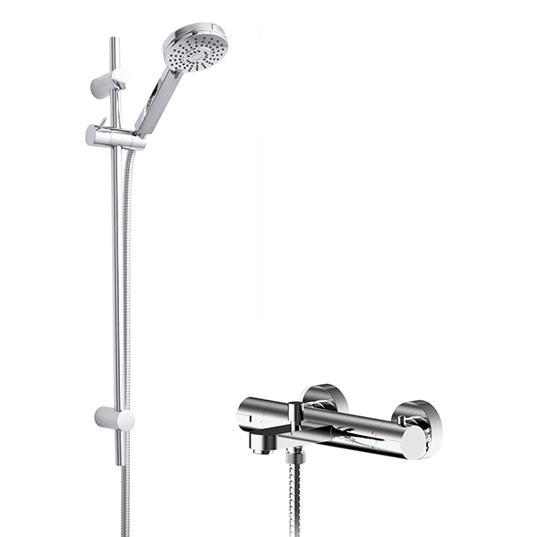 Nuie Exposed Thermostatic Bath Shower Mixer and Water Saving Slide Rail Kit - Chrome