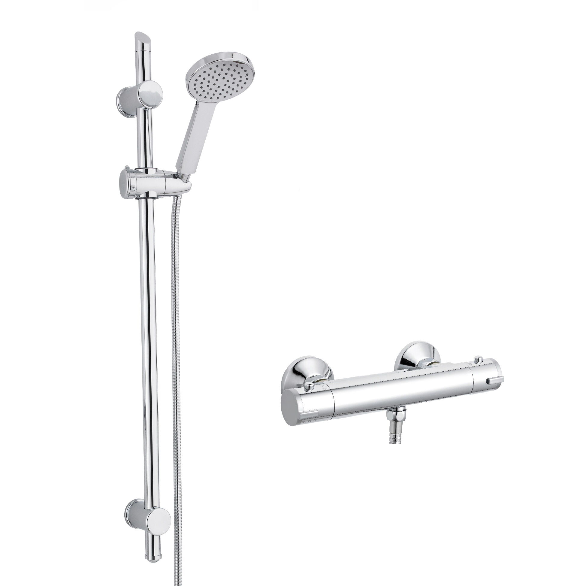 Nuie Round Thermostatic Bar Shower Valve with Water Saving Shower Kit - Chrome