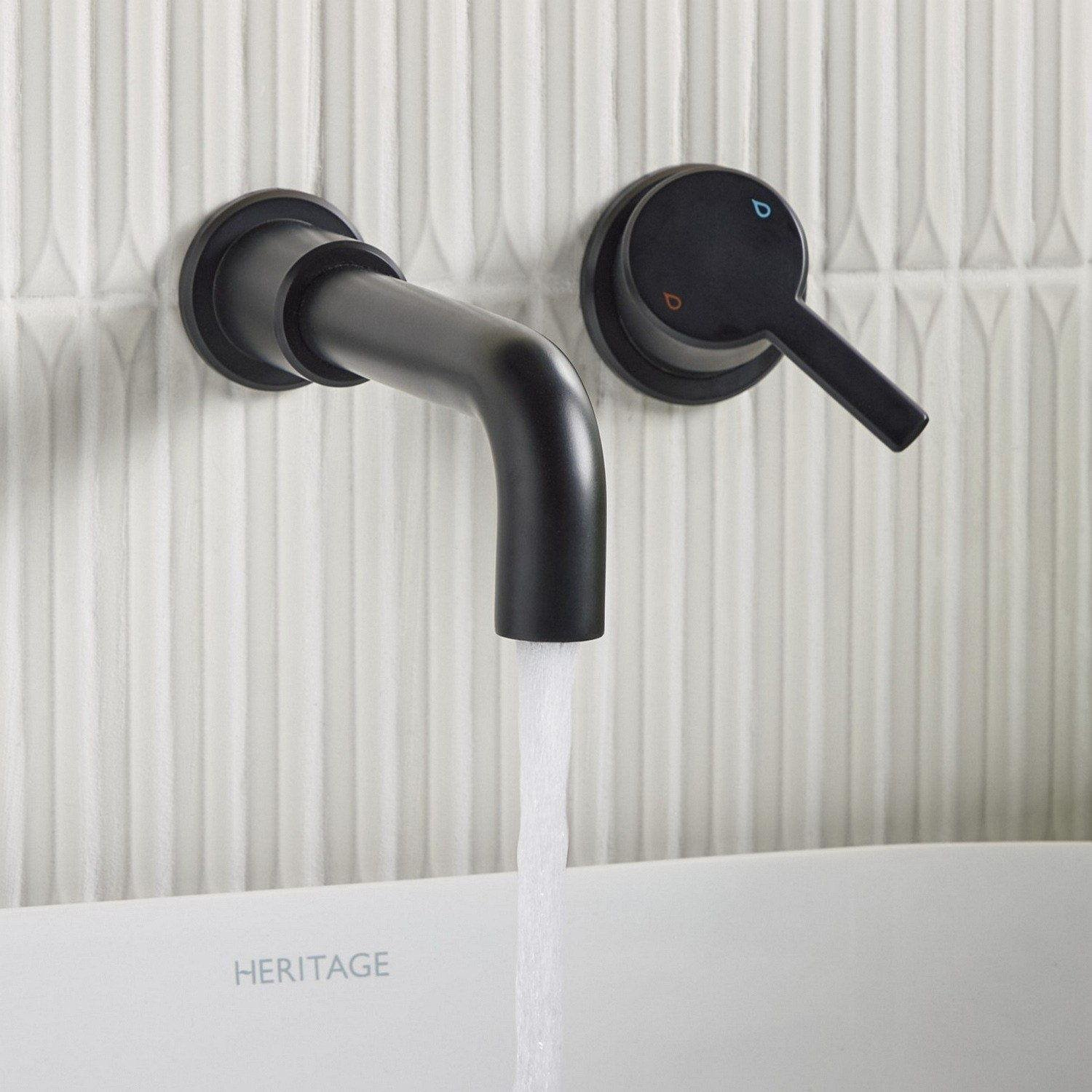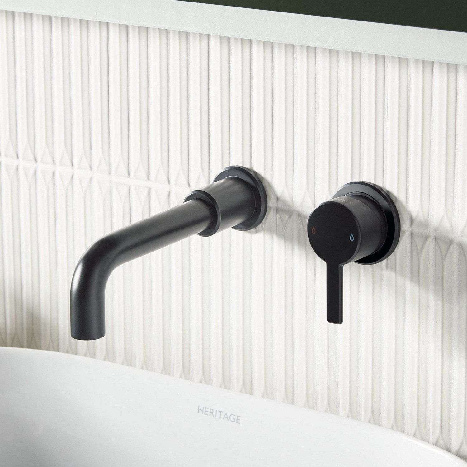 Bristan Altum 2 Hole Contemporary Basin Mixer Tap - Curved Spout - Wall Mounted.