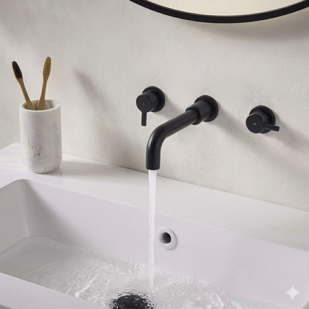 Bristan Altum 3 Hole Contemporary Basin Mixer Tap - Curved Spout - Wall Mounted.