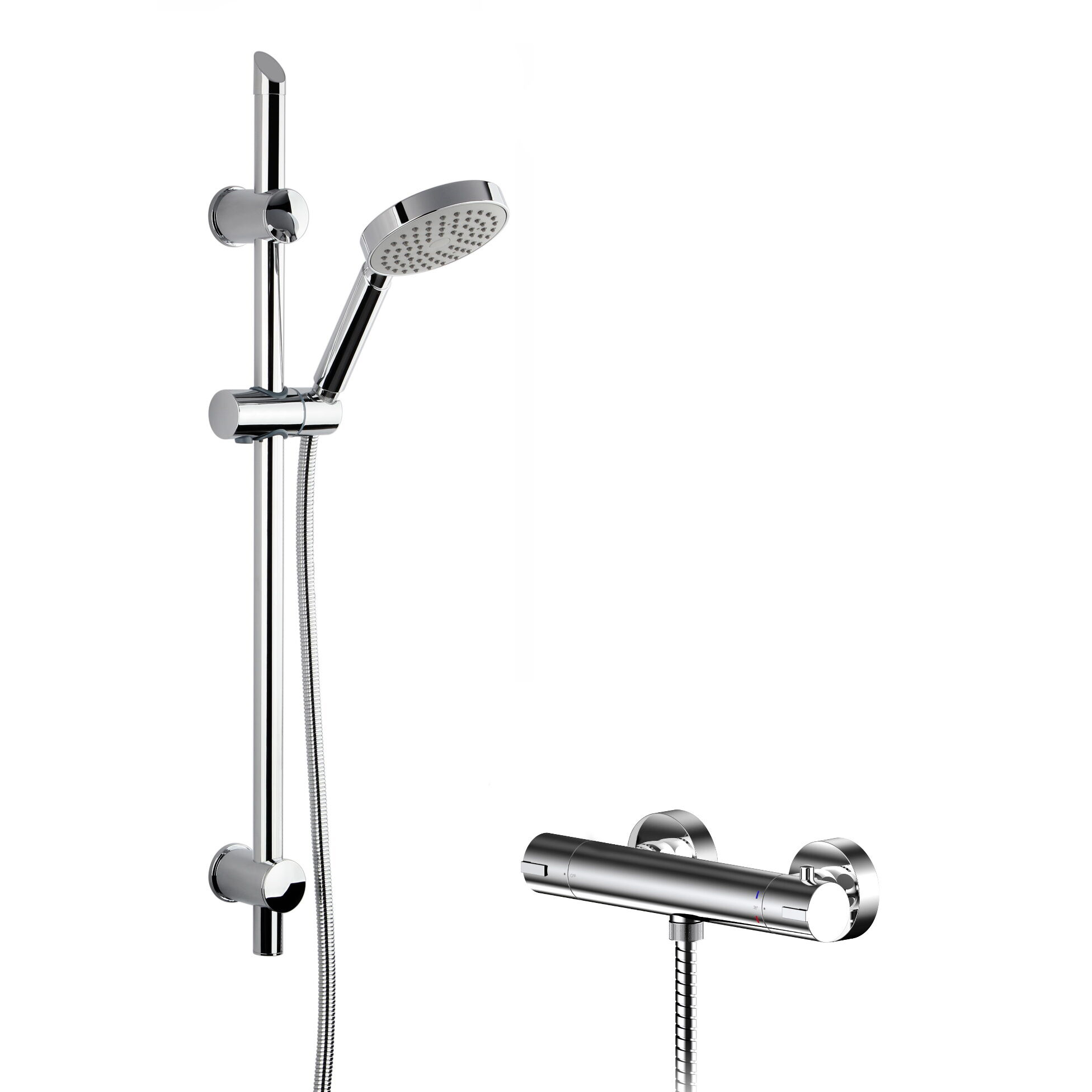 • Pack Includes: Round Thermostatic Bar Valve & Slim Shower Kit