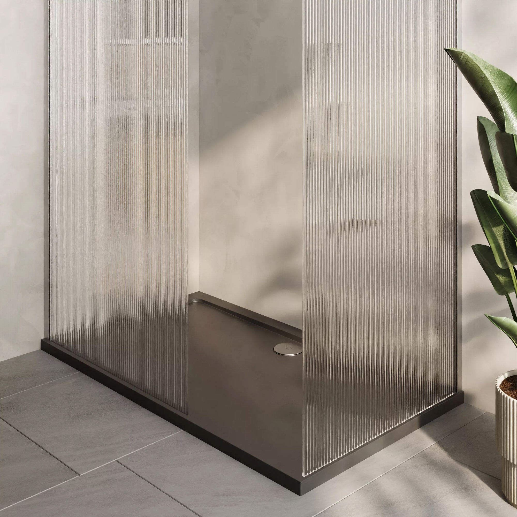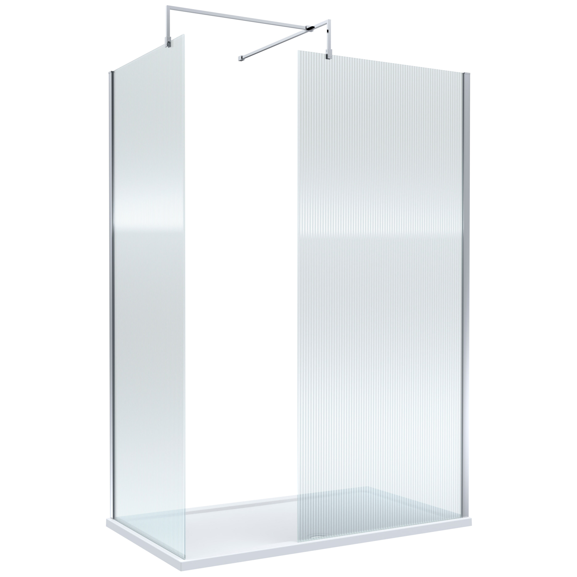 Nuie Frameless Fluted Glass Wetroom Screen with Support Bars and Rectangular Tray