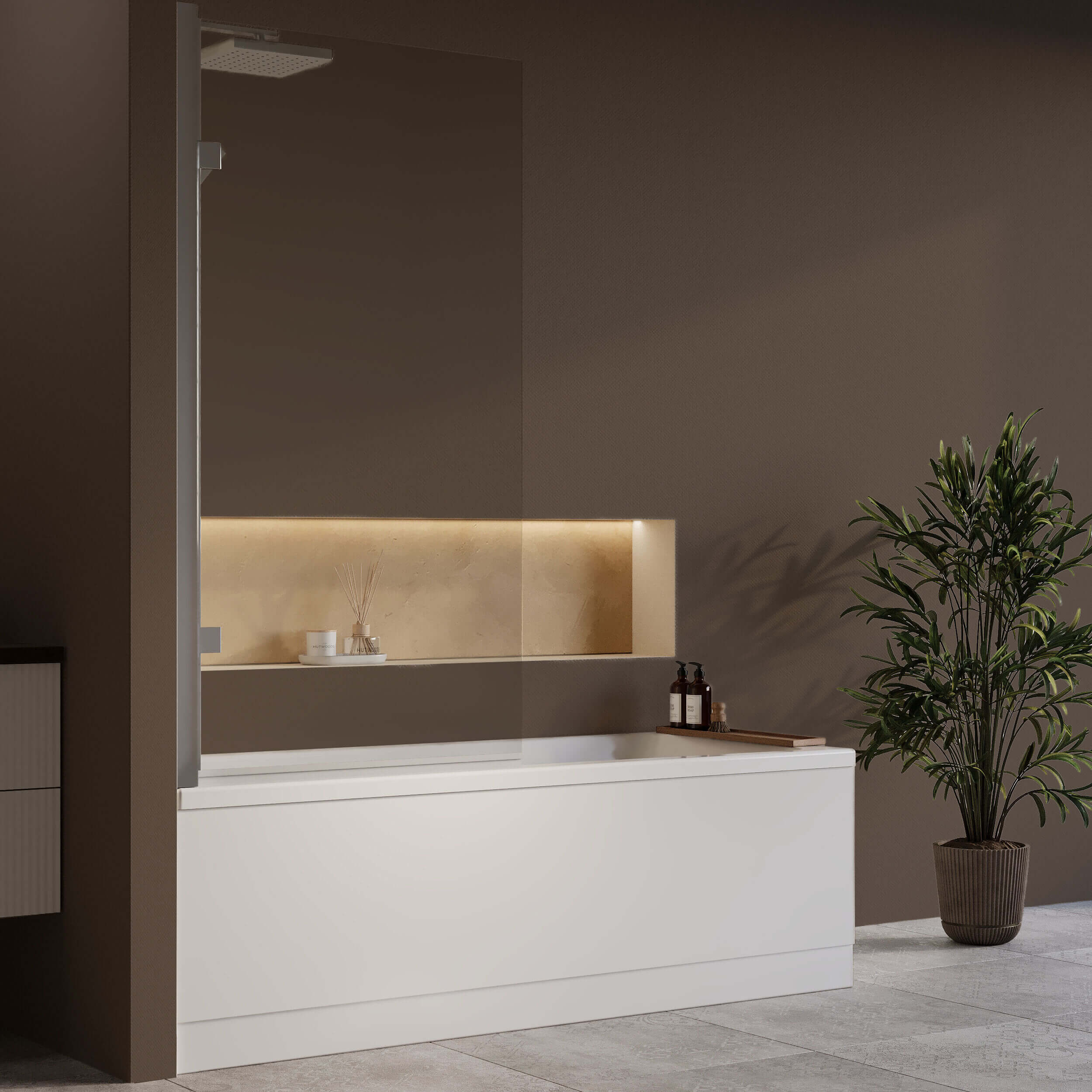 Nuie Single Ended Straight Bath with Hinged Screen and Panel - 4mm Acrylic - 1700mm Length