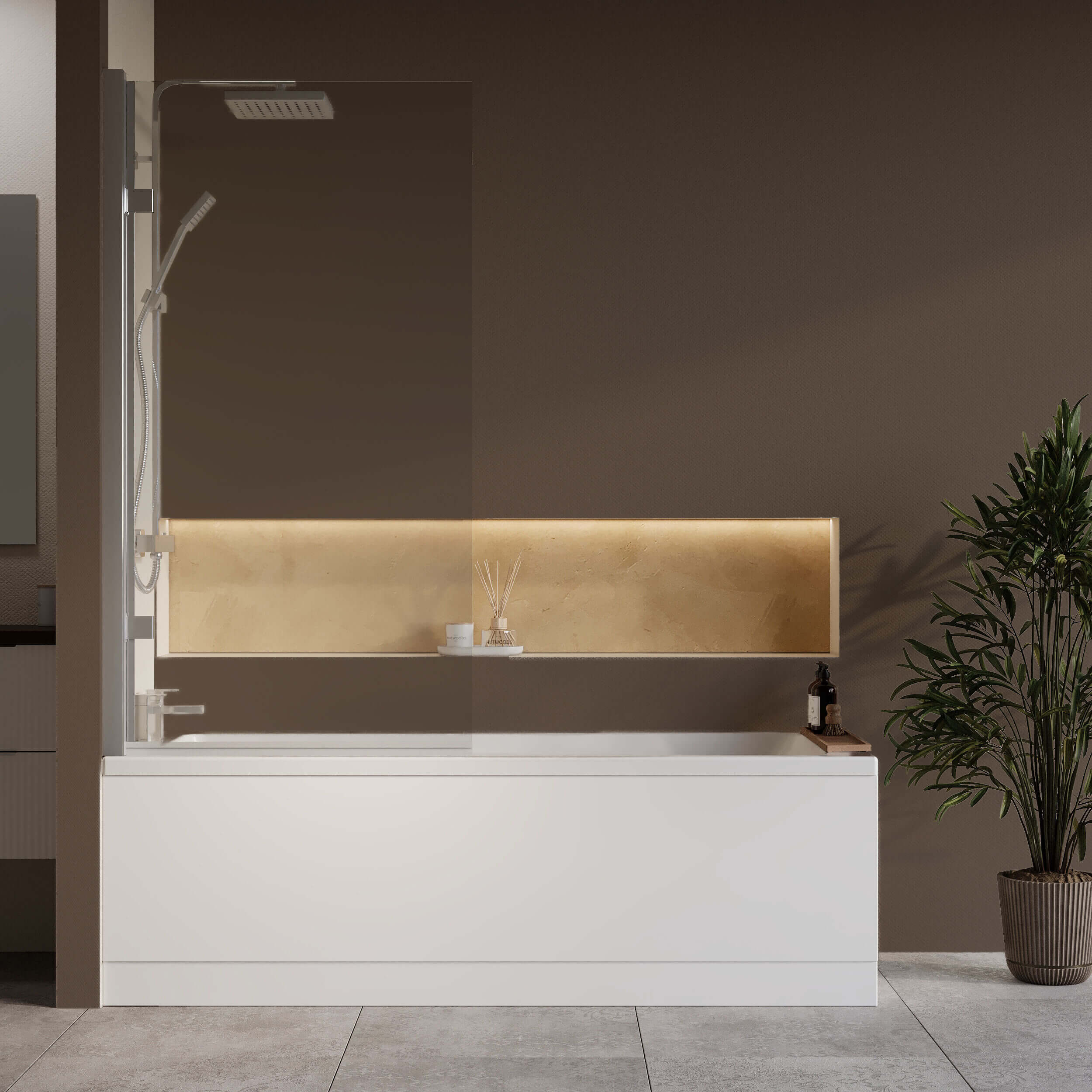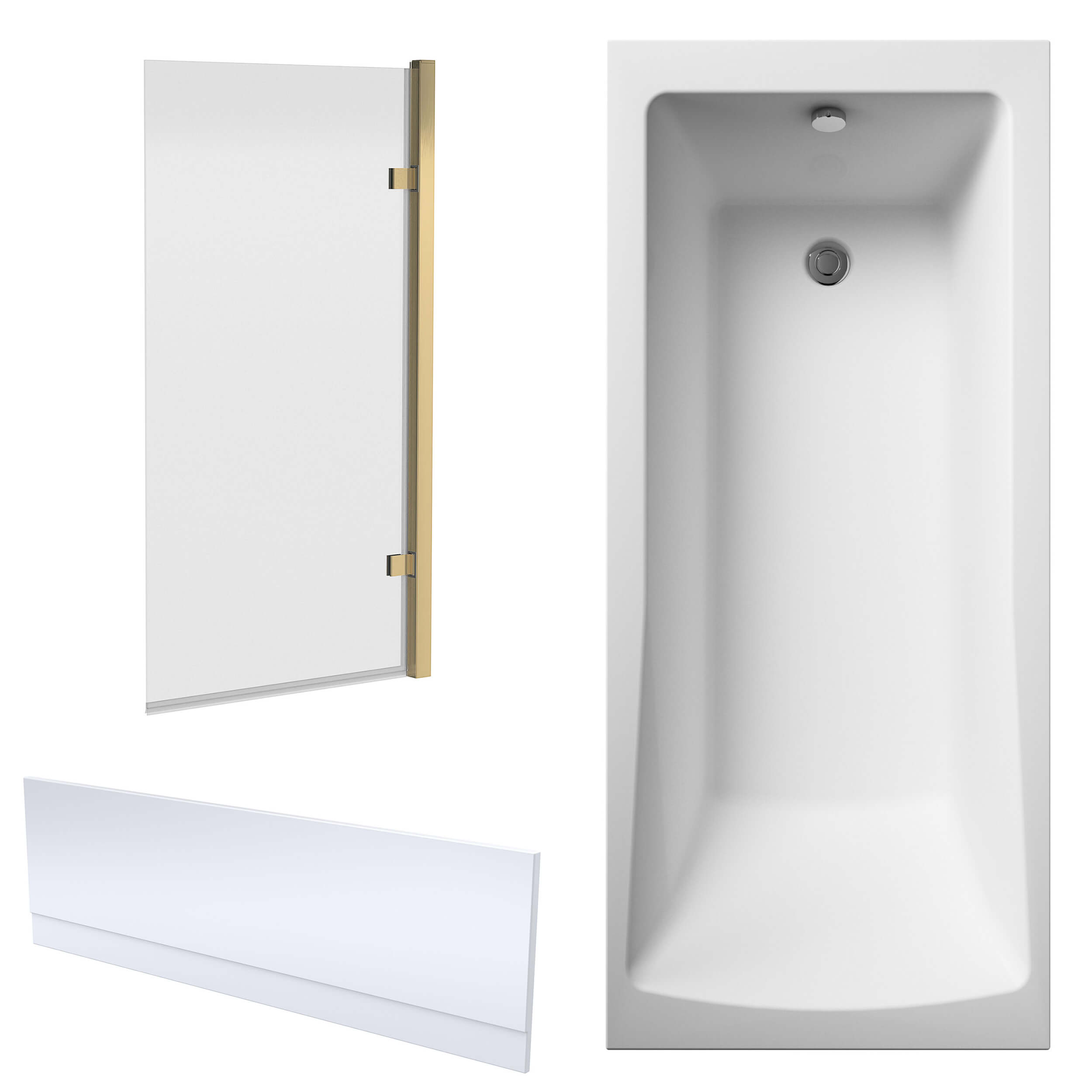 Nuie Eternalite Single Ended Straight Bath with Hinged Screen and Panel - 1700mm Length