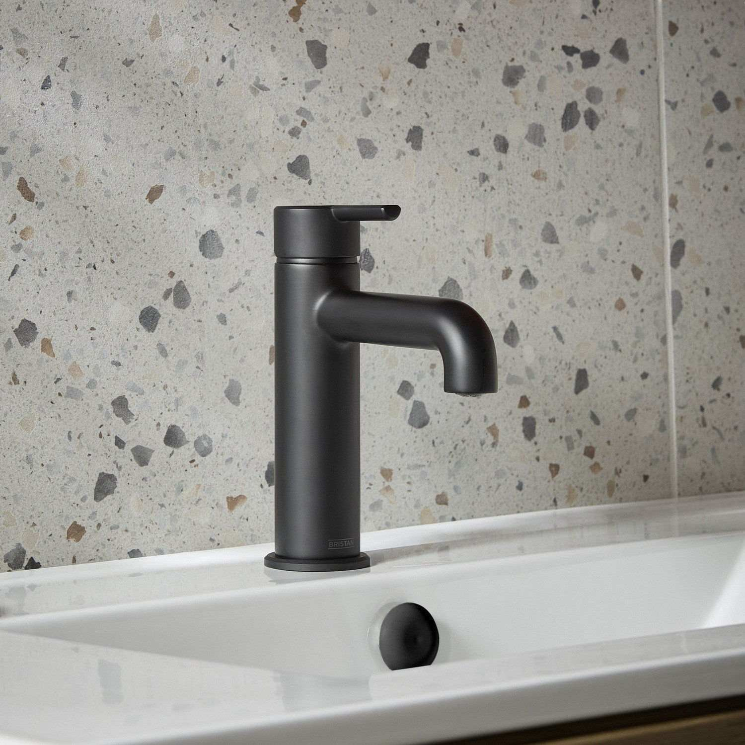 Bristan Altum Basin Mixer Tap with Curved Spout and Clicker Waste - Lever Handle.