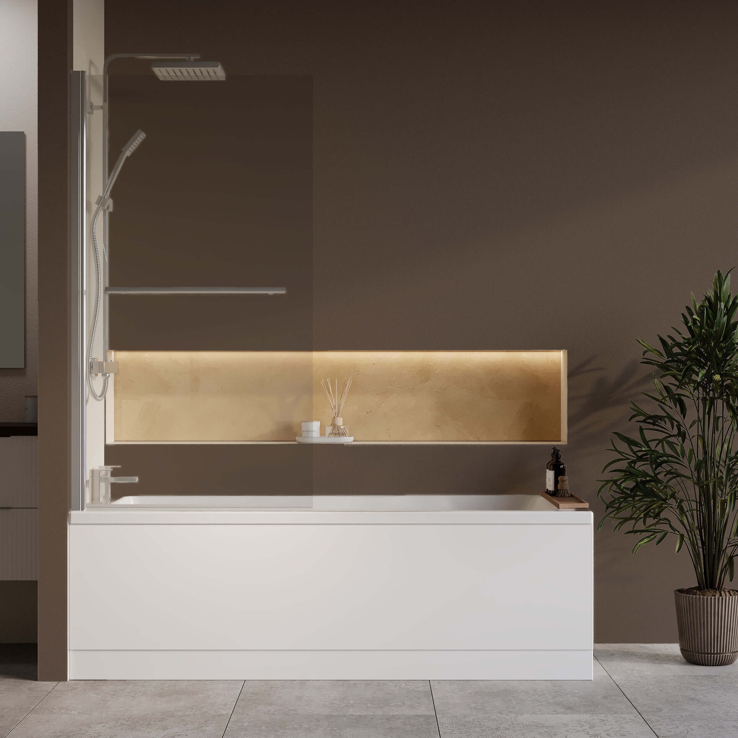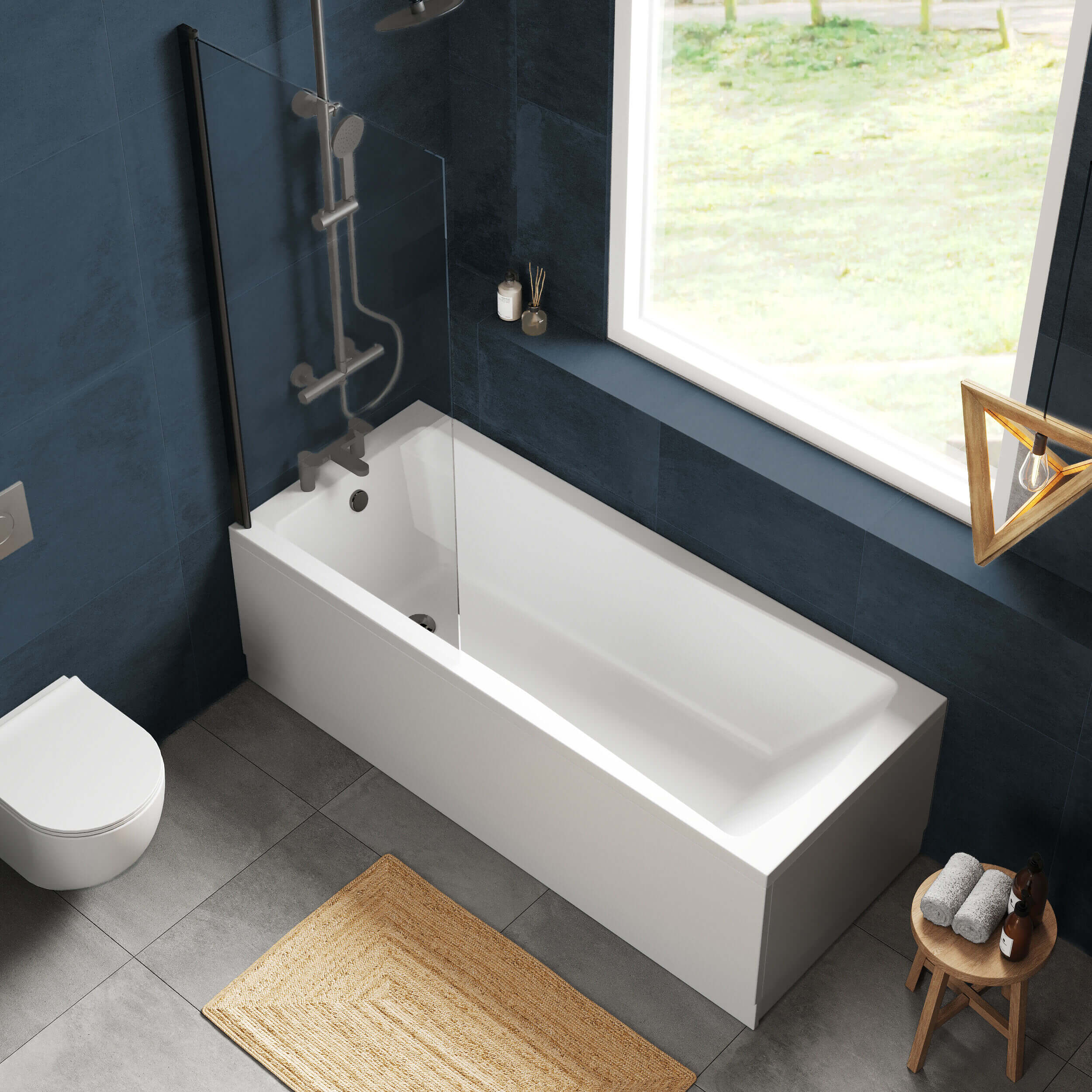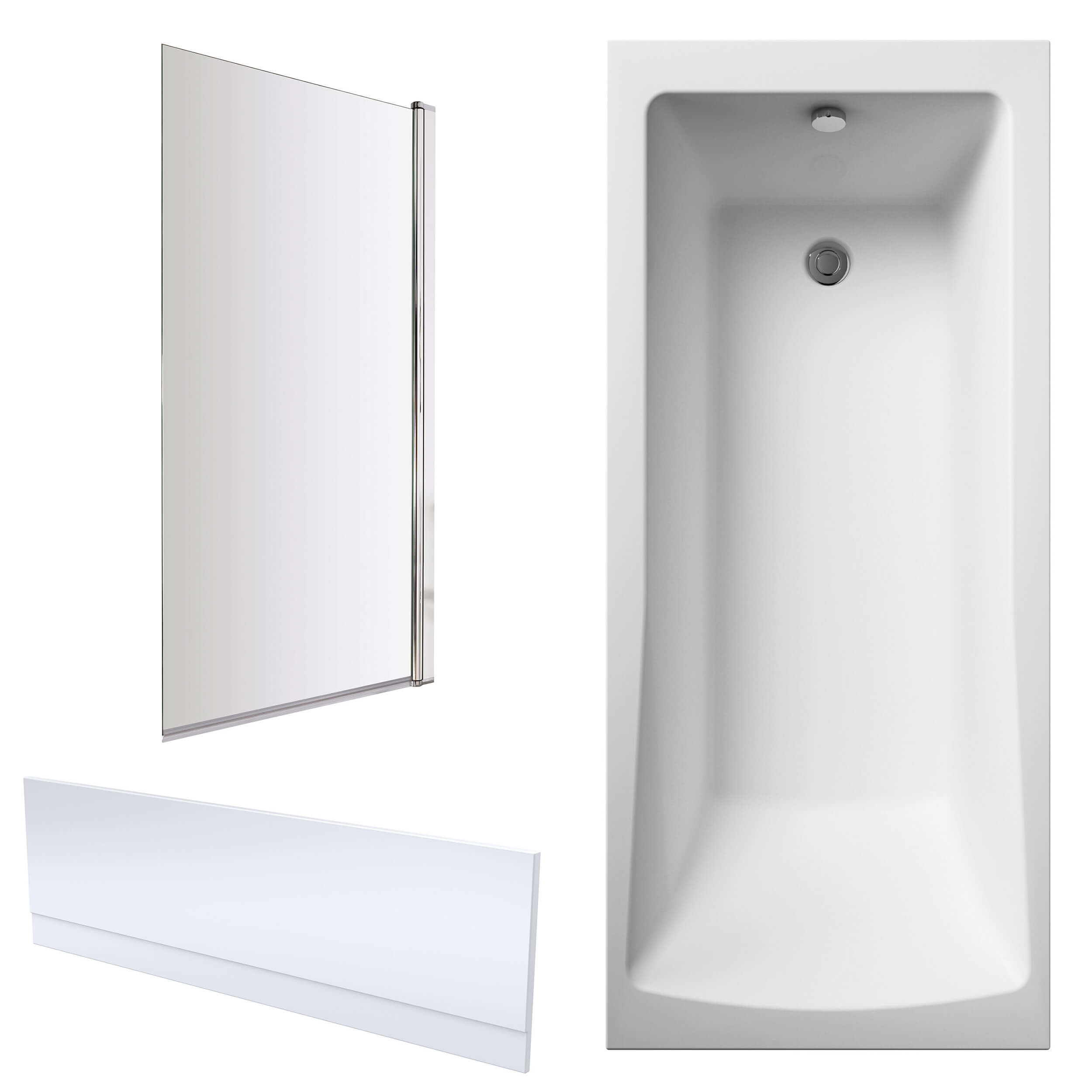Nuie Eternalite Single Ended Straight Bath with Straight Swing Screen and Panel - 1700mm Length.