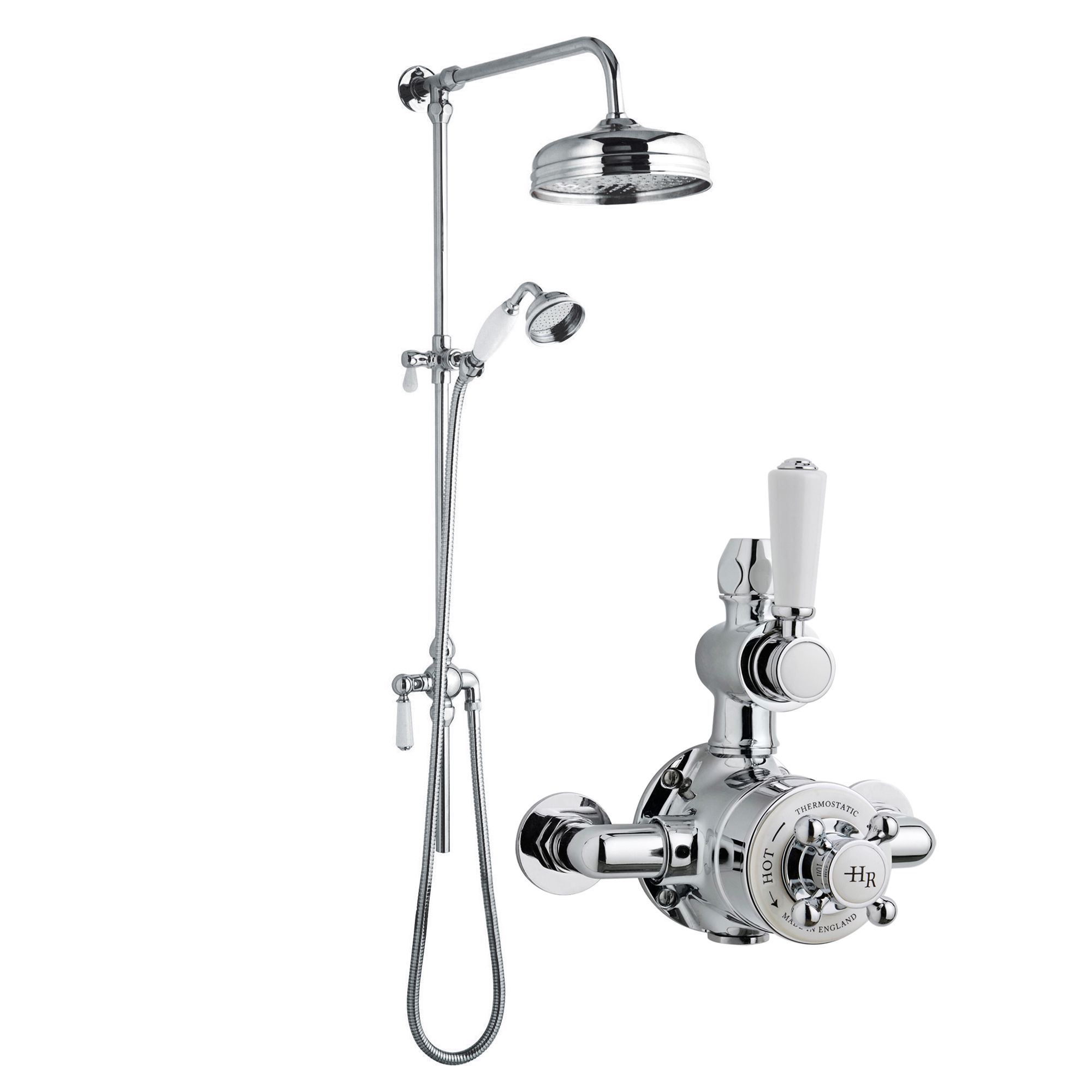 Nuie Exposed Thermostatic Traditional Shower Mixer Valve with Rigid Riser Kit