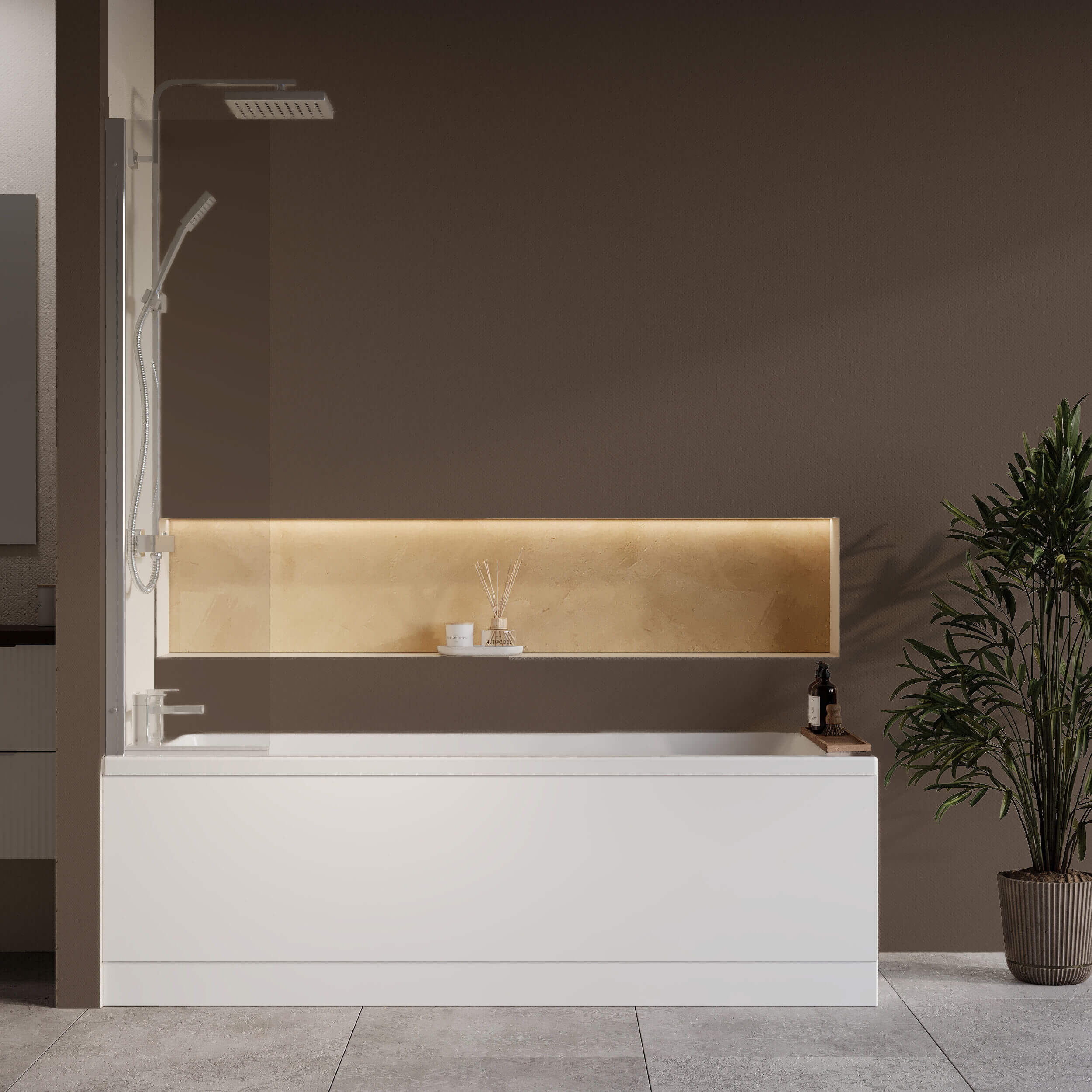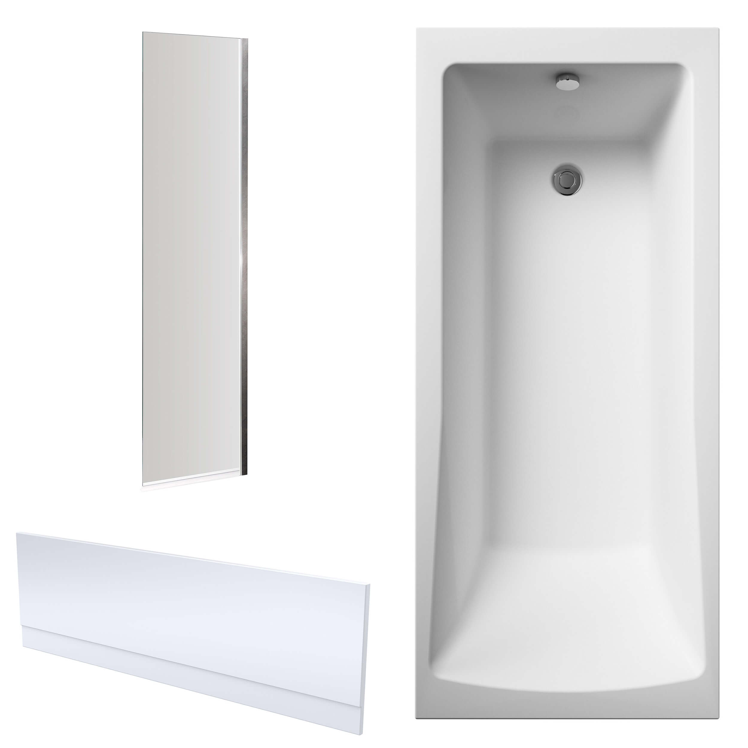 Nuie Eternalite Single Ended Straight Bath with Fixed Half Screen and Panel - 1700mm Length.