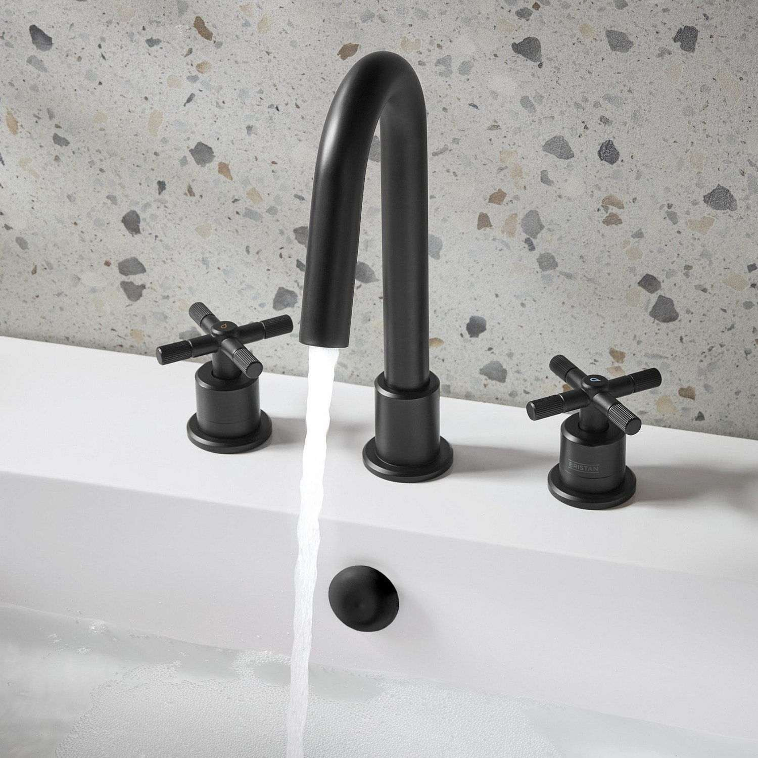 Bristan Cruzar Contemporary 3 Hole Basin Mixer Tap - Crosshead Handles - Deck Mounted.