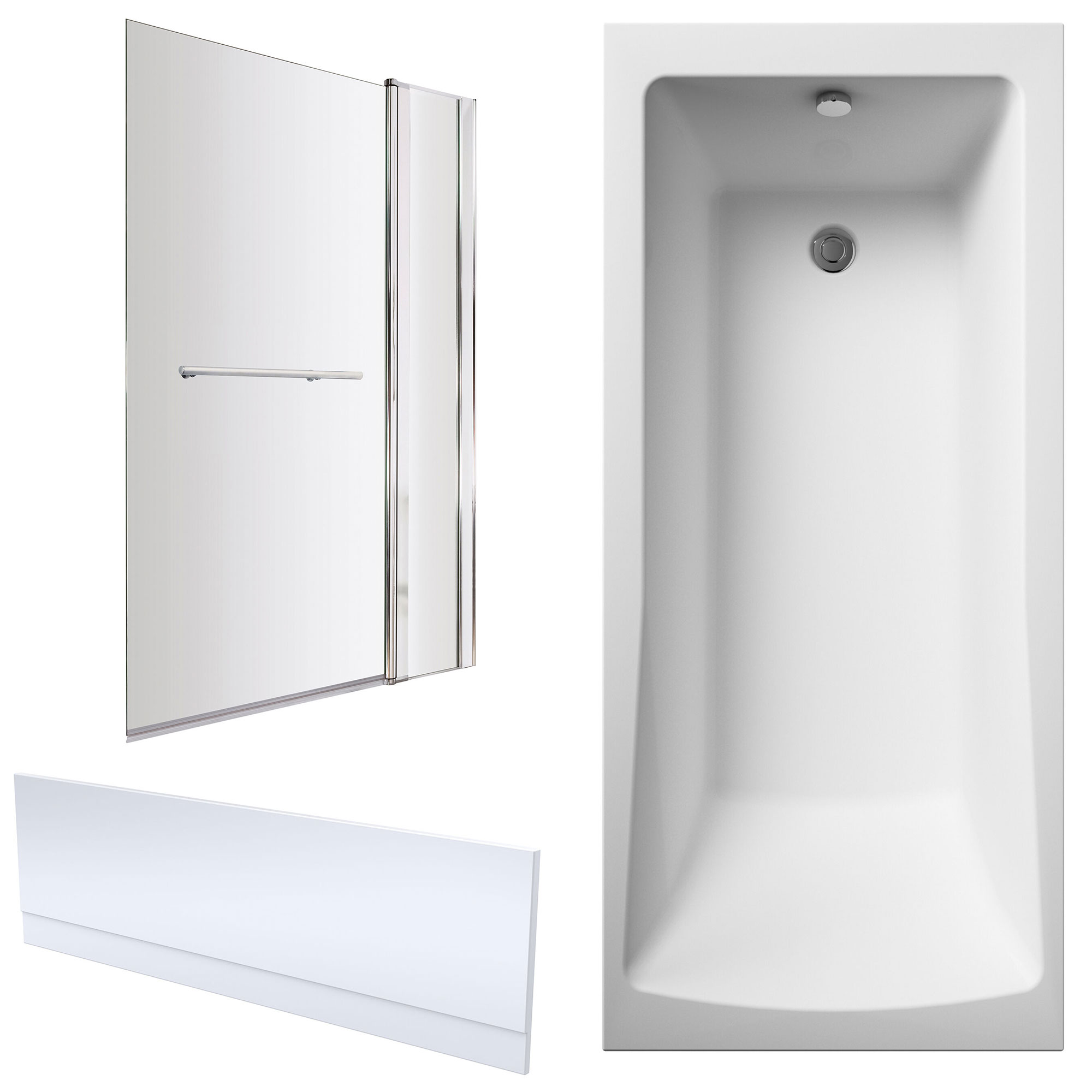 Nuie Square SE Acrylic Bath With Front Panel and Straight Bath Screen - 1700mm Length