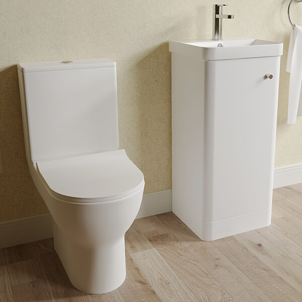 • Pack Includes: 2-Door Vanity Unit and Thin Edge Basin, Rimless Pan, Soft-Close Seat and Cistern, Basin Tap and Waste