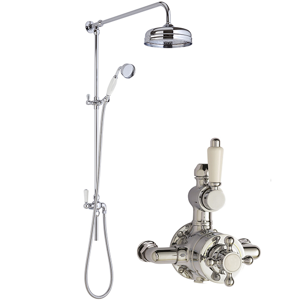 Nuie Traditional Rigid Riser Shower Kit with Victorian Exposed Thermostatic Valve.