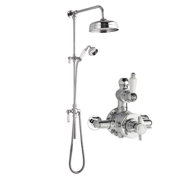 Nuie Traditional Rigid Riser Kit with Beaumont Twin Exposed Thermostatic Shower Valve