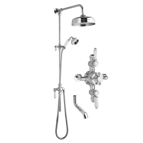 Nuie Traditional Rigid Riser Kit and Victorian Triple Exposed Thermostatic Shower Valve