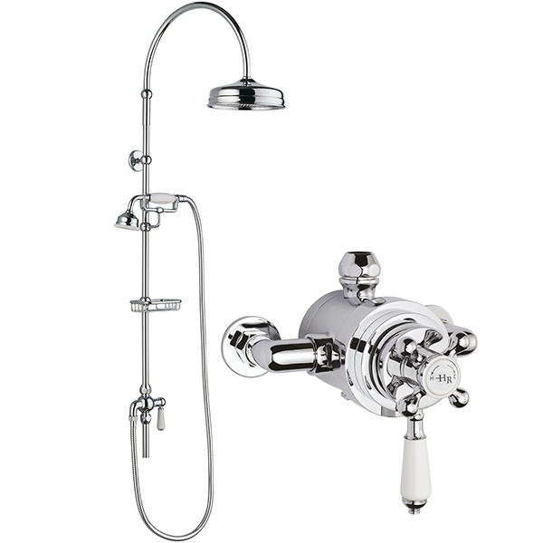Nuie Traditional Rigid Riser Shower Kit with Topaz Exposed Thermostatic Valve.