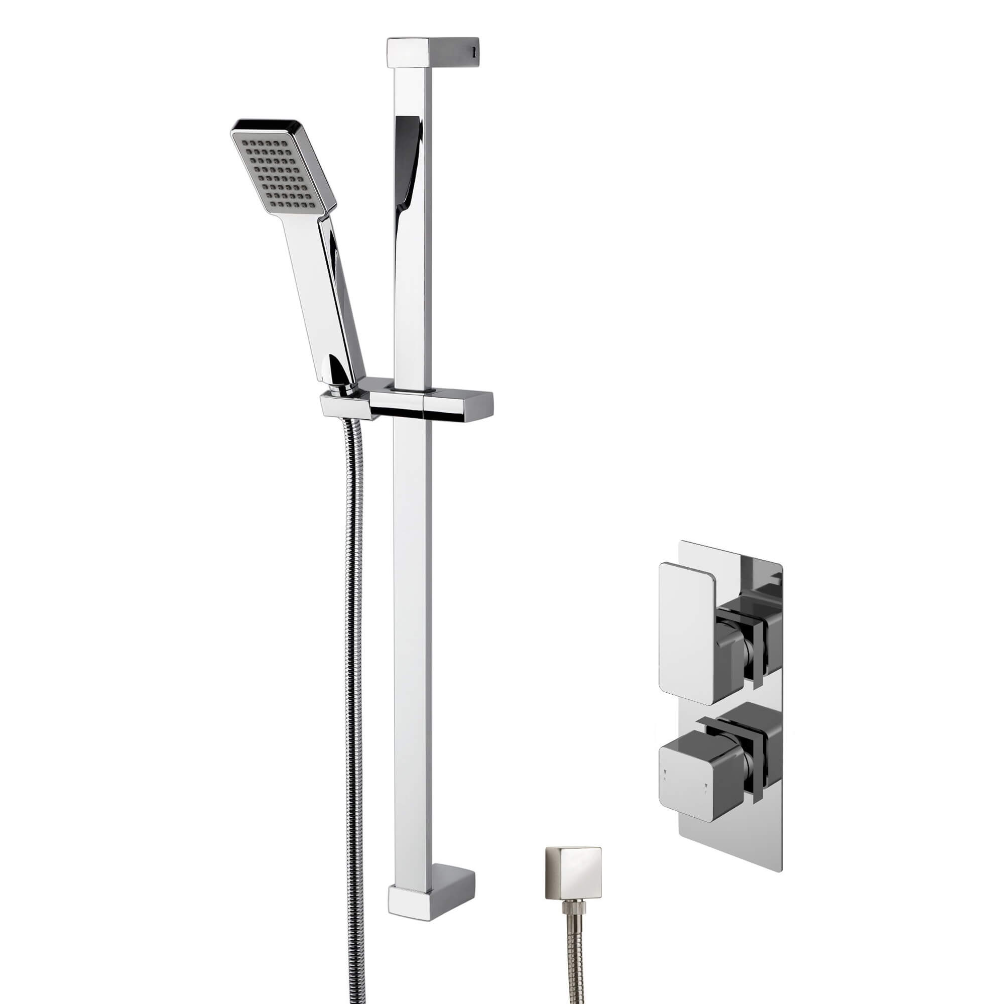 Nuie Windon Square Twin Thermostatic Shower Valve with Slide Rail Kit and Outlet Elbow