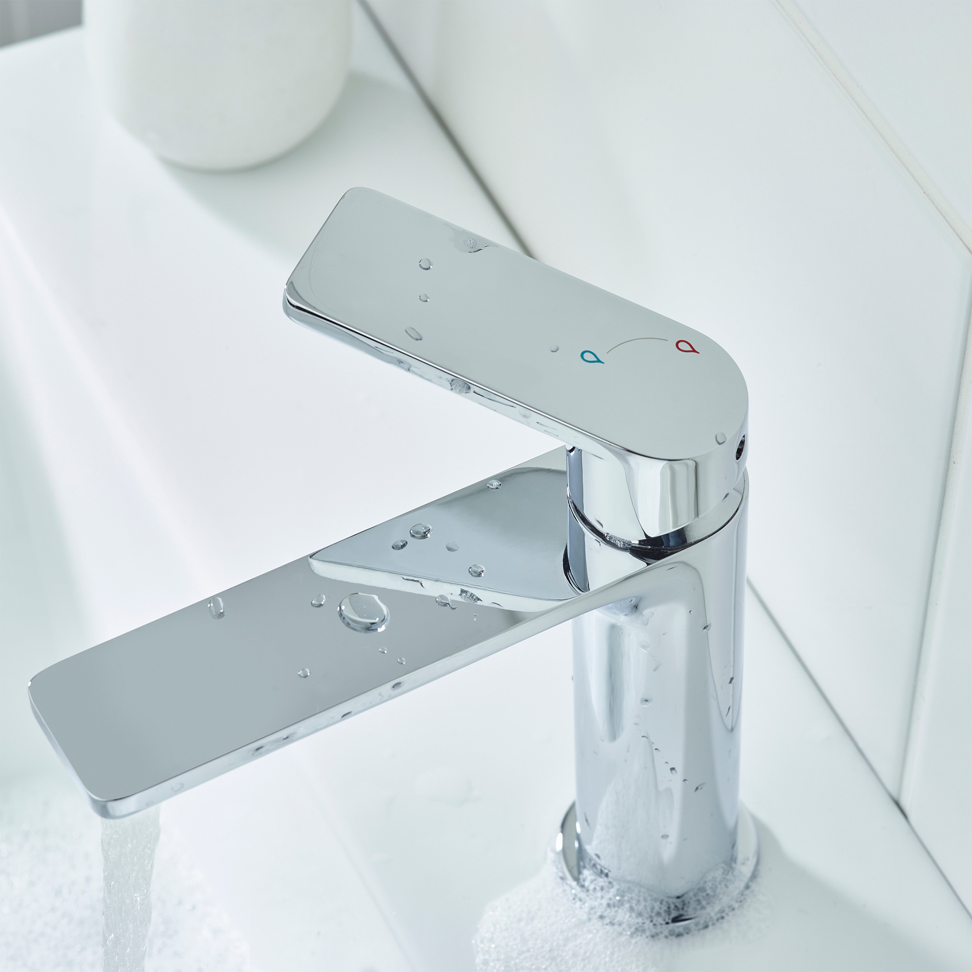 Eco-Start ensures your tap water is always cold when you start the tap. You can activate hot water when needed by moving the handle towards the hot indicator. This way you save money on your energy bills and reduce your carbon impact.