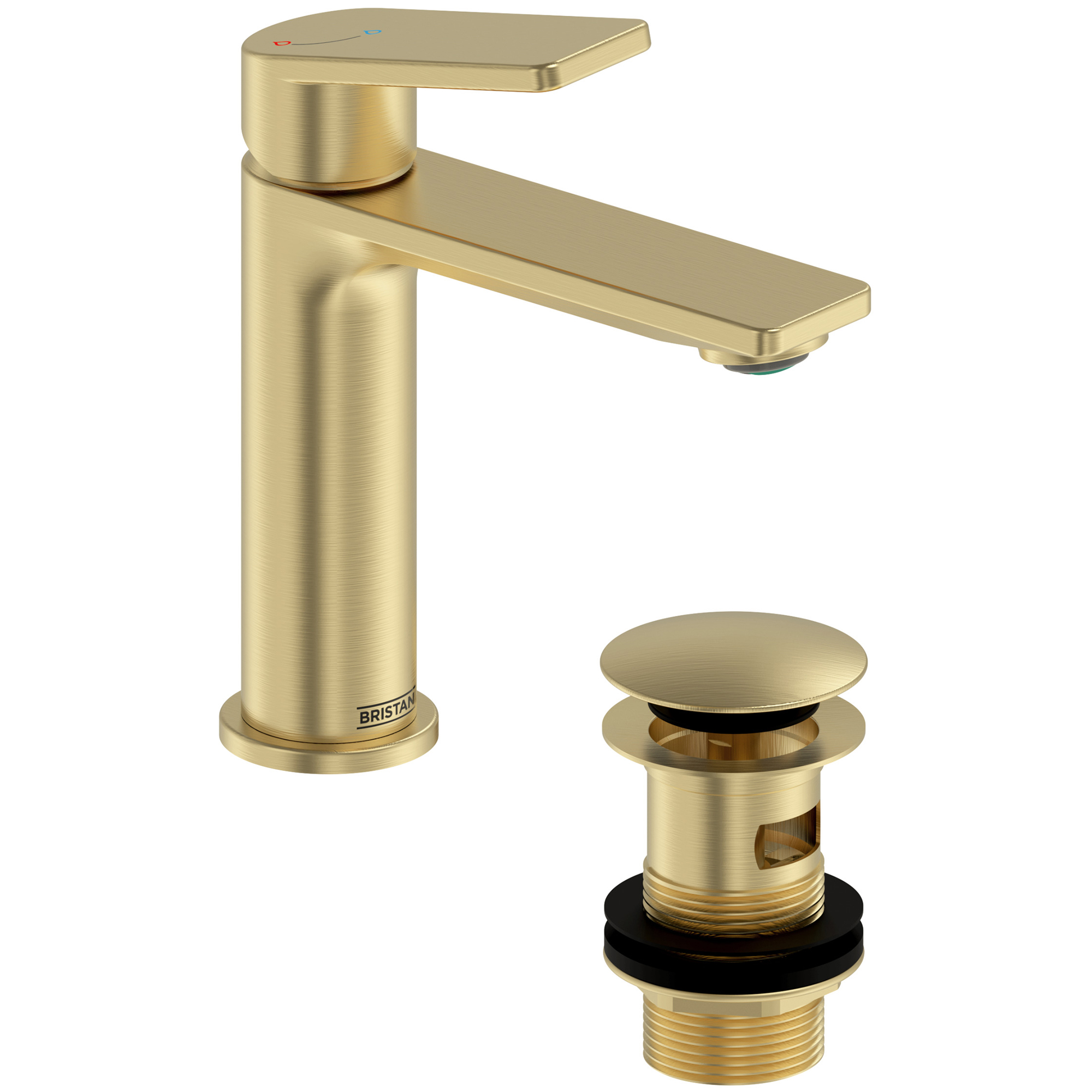 Bristan Frammento Eco Start Basin Mixer Tap with Clicker Waste - Flat Handle and Spout